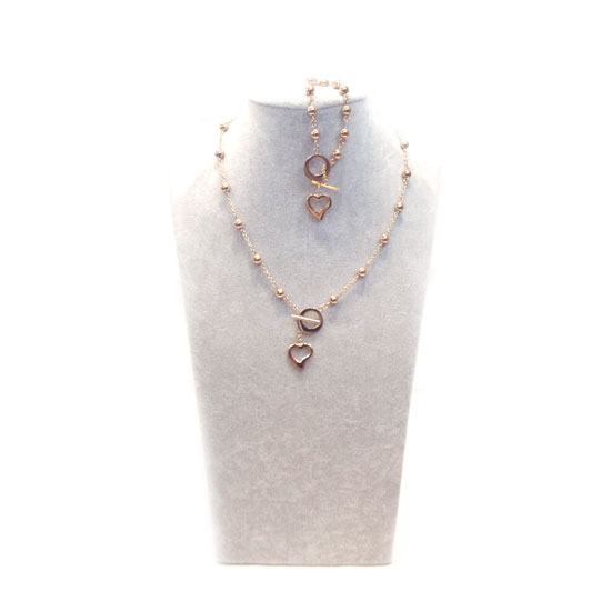 This is a fashionable jewelry set that includes a necklace and a bracelet with a matching design. Each piece is accented with rings and beads for a touch of style. This elegant jewelry set pairs with your outfit nicely.