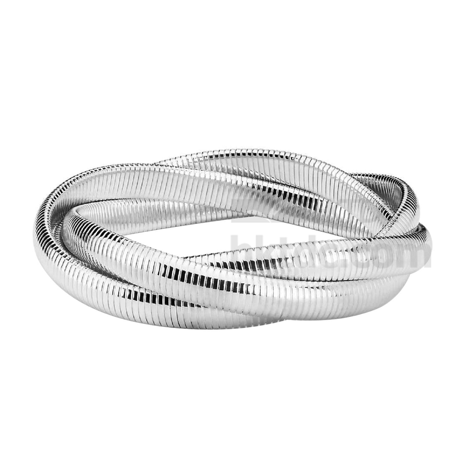 • Beautifully versatile, this sterling silver bangle is crafted from one long silver cord woven together to create a design that easily stretches on and off your wrist. This bracelet is a unique and versatile gift that will be sure to impress.