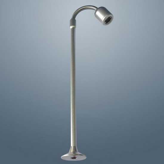 Displayed is a jewelry spotlight coming with a slim pole. It features a short gooseneck for quick and easy adjustment of the projection angle. Cast bright light on stunning jewel items with this delicate spotlight.