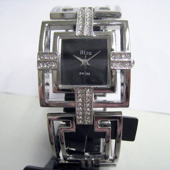 This fancy watch features a square-shaped case with an echoing outer frame and sparkling crystal accents. The luxurious metallic bracelet adds a glamorous element to the design, while the numberless dial gives it a minimalist look to strike for a balance. It is great to honor someone special with this fashionable watch.