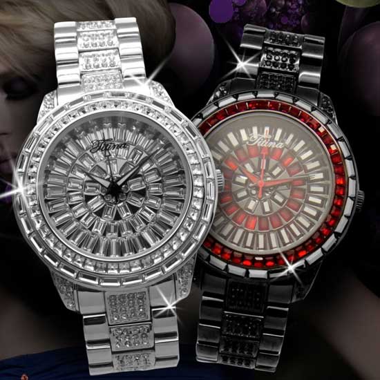 This jewelry watch flaunts bold extravagance and refined style. Countless sparkling stones are added to the dial, watch case, lug and watch band. This exquisite watch is a collectible jewelry for ladies.
