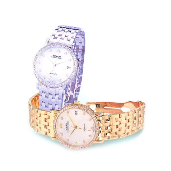 This is a gorgeous watch that runs on a high-precision movement. It boasts a highly glossy watch band and a round watch case. The round dial face comes with three hands and a date display.