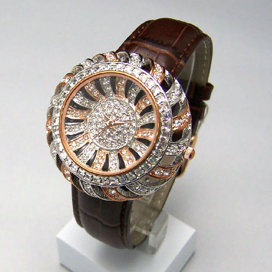 This jewelry watch boasts a deluxe, charming and eye-catching design. It is meticulously adorned with sparkling elements for added uniqueness. The brown genuine straps match the case perfectly for an excellent finish.