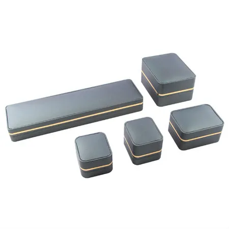 This set of jewelry boxes are crafted of plain PU material and is adorned with gold toned decorative edges. They come in different sizes and have different inserts for holding different kinds of products like watches, rings, earrings, necklaces, hand chains, etc. The boxes offer good protection to the stored products and is great for storage, packaging and display use.