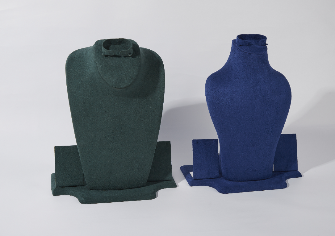 Jewellery display stand, accommodating various jewellery styles. Multiple shapes available. Customisable materials and colours.