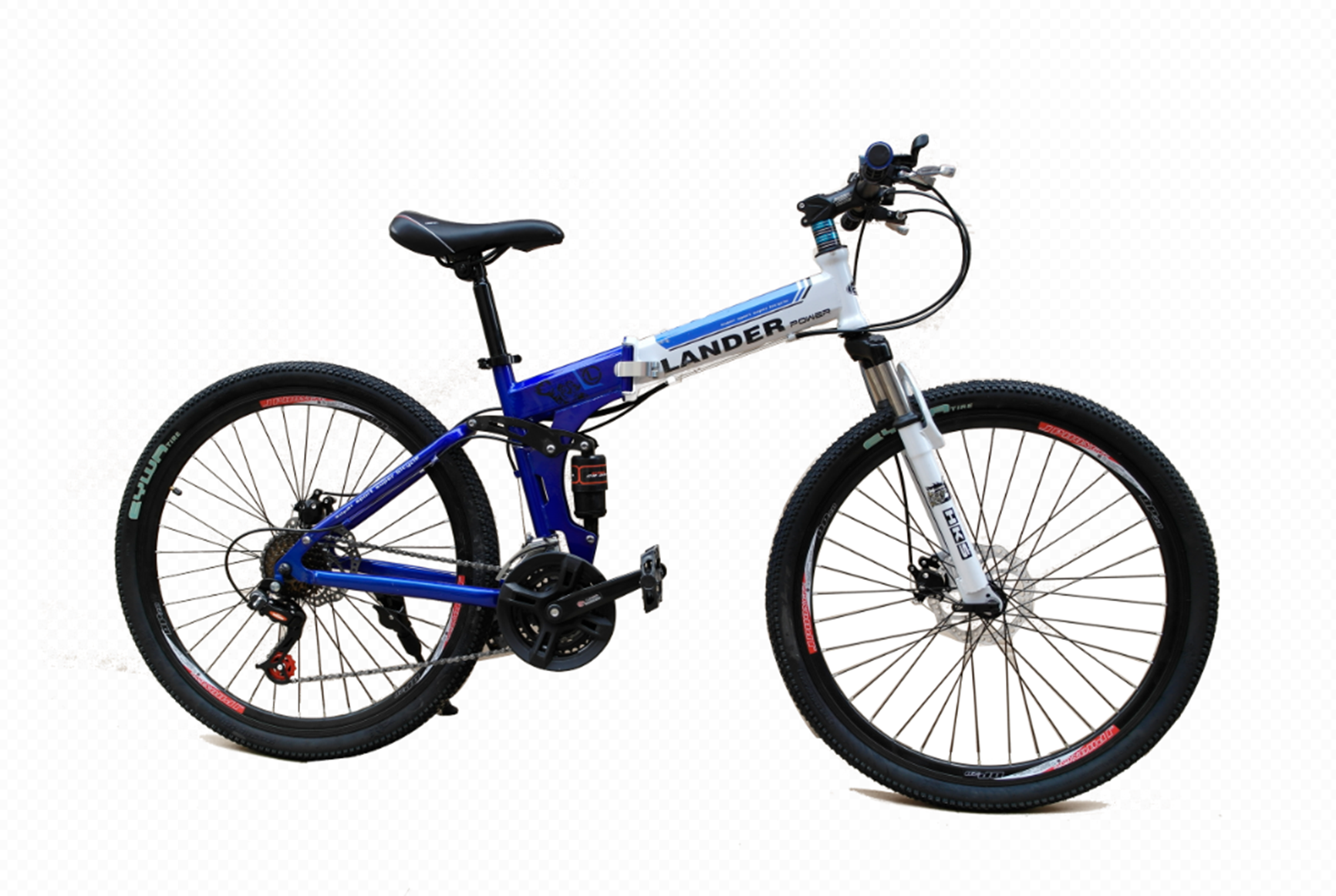 High carbon steel folding soft tail frame, color-breaking paint inside sticker, double shock absorption, KONE disc brakes, aluminum alloy T rims, domestic transmission system (Taichang 51 finger shift 50 rear derailleur), Hengqi/Huanyu/Jusheng 26× 195 tires, natural rubber inner tube