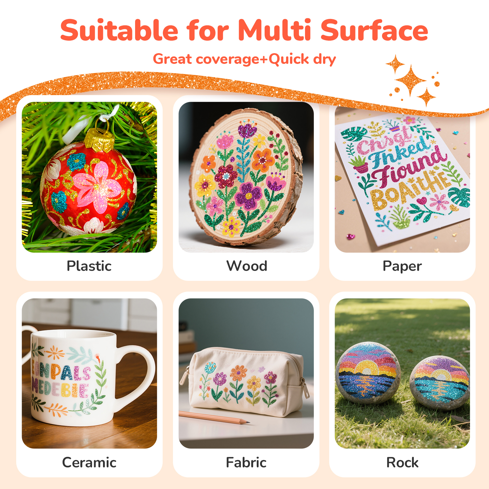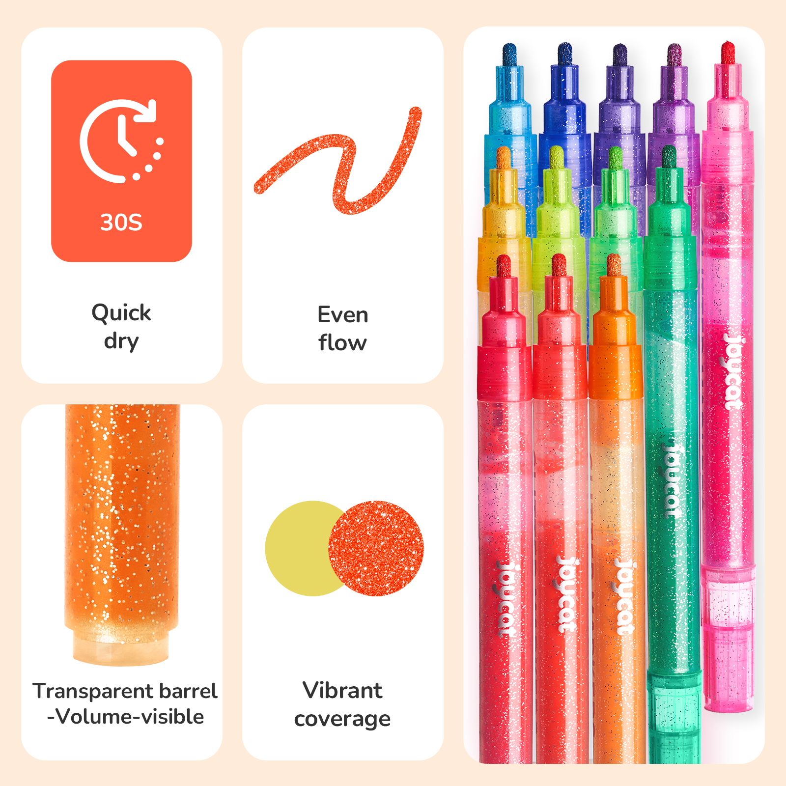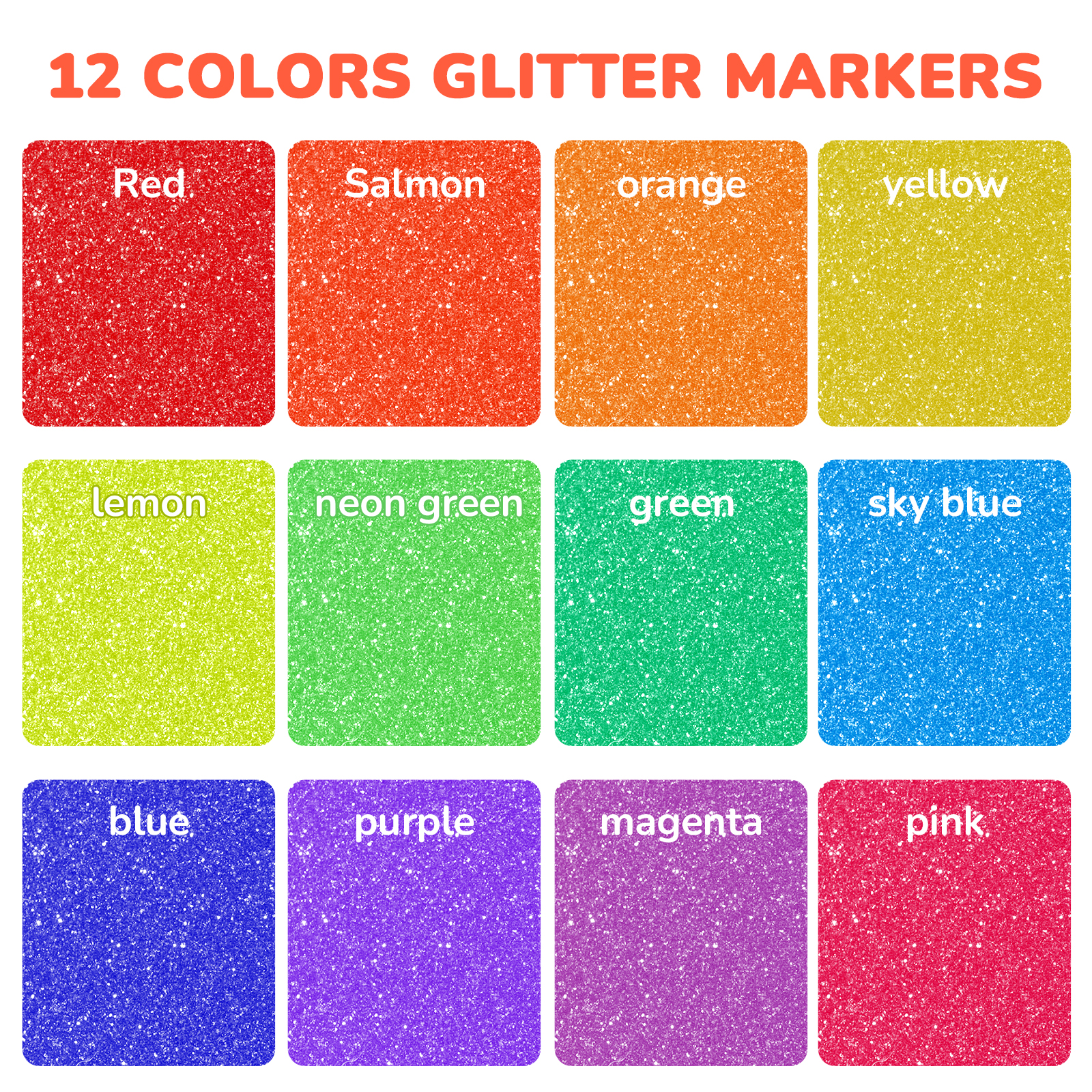 【12 CURATED GLITTER HUES | EYE-CATCHING SPARKLE】 From bold Red to soft Pink, each shade features intense glitter particles optimized for maximum shimmer on dark & light surfaces. No chalky finishes – just rich, opaque metallics that pop on wood, glass, and black paper.