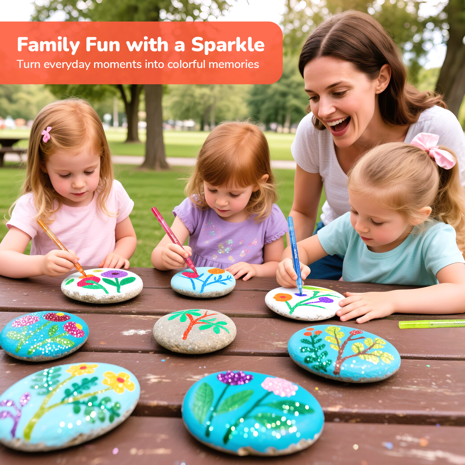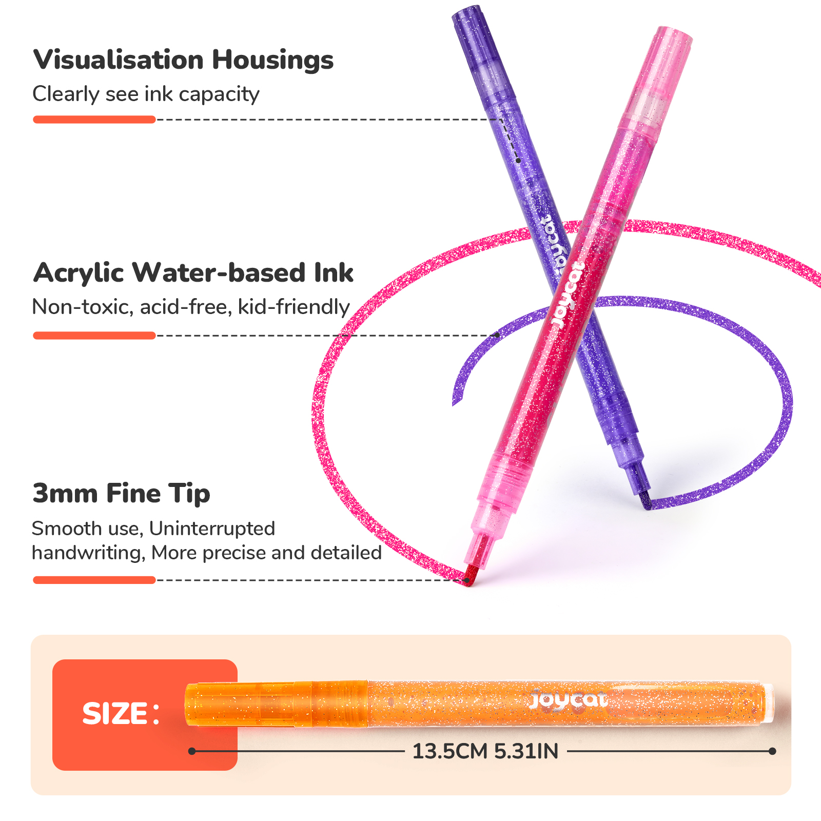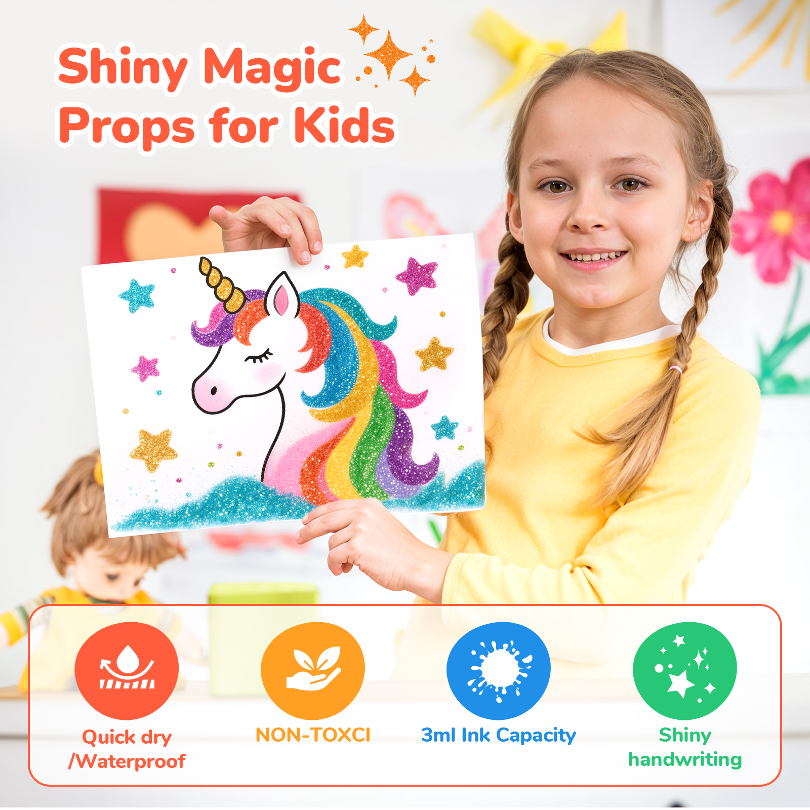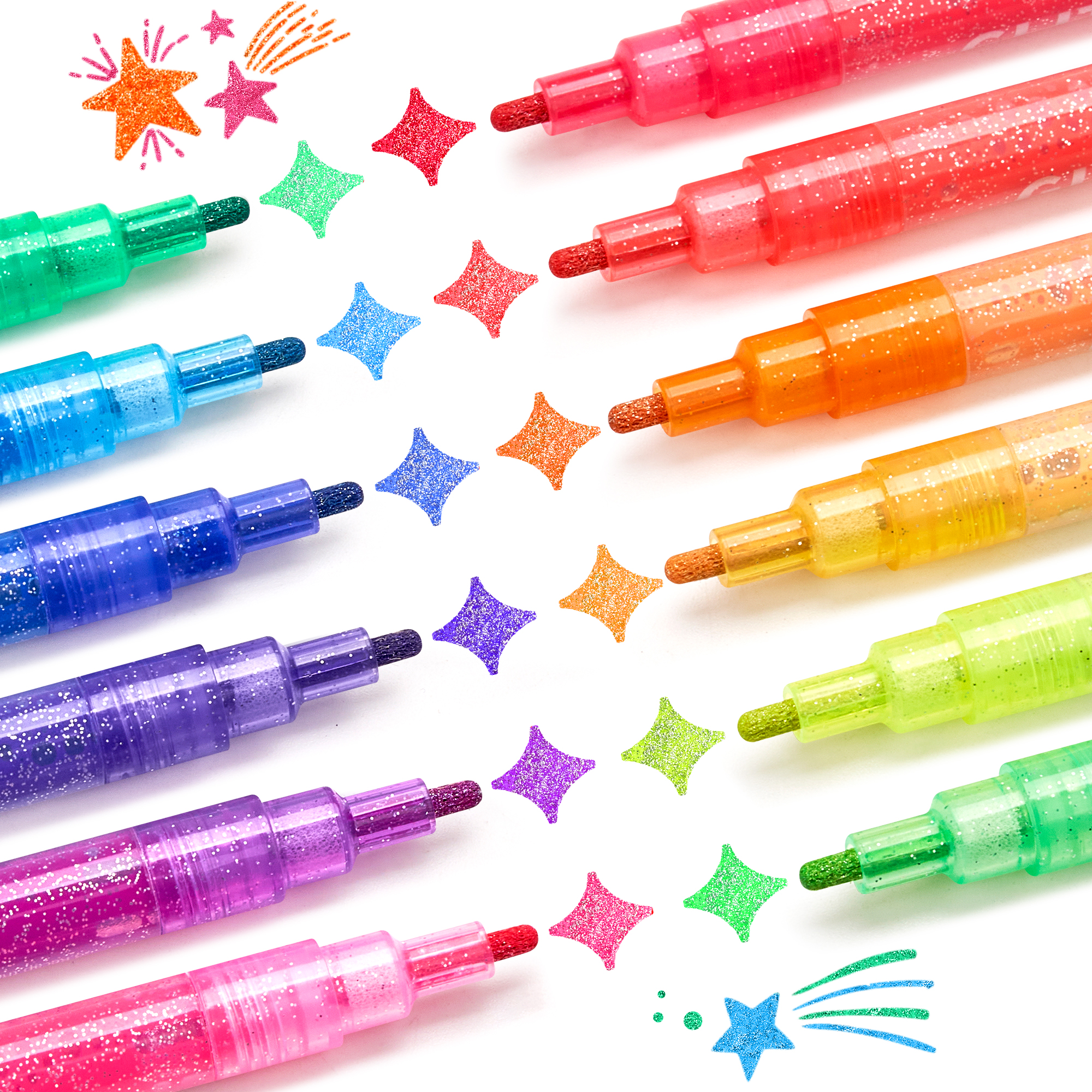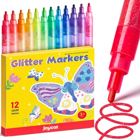 【50% MORE INK | LASTING CREATIVITY】 Packed with 3ml high-capacity ink (vs standard 2ml), our glitter markers deliver extended painting time and vibrant coverage. Ideal for large-scale projects where competitors' pens run dry.