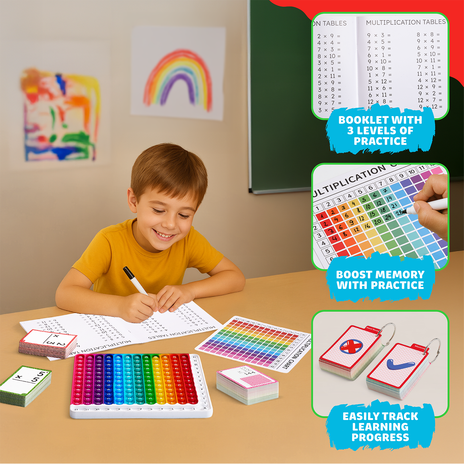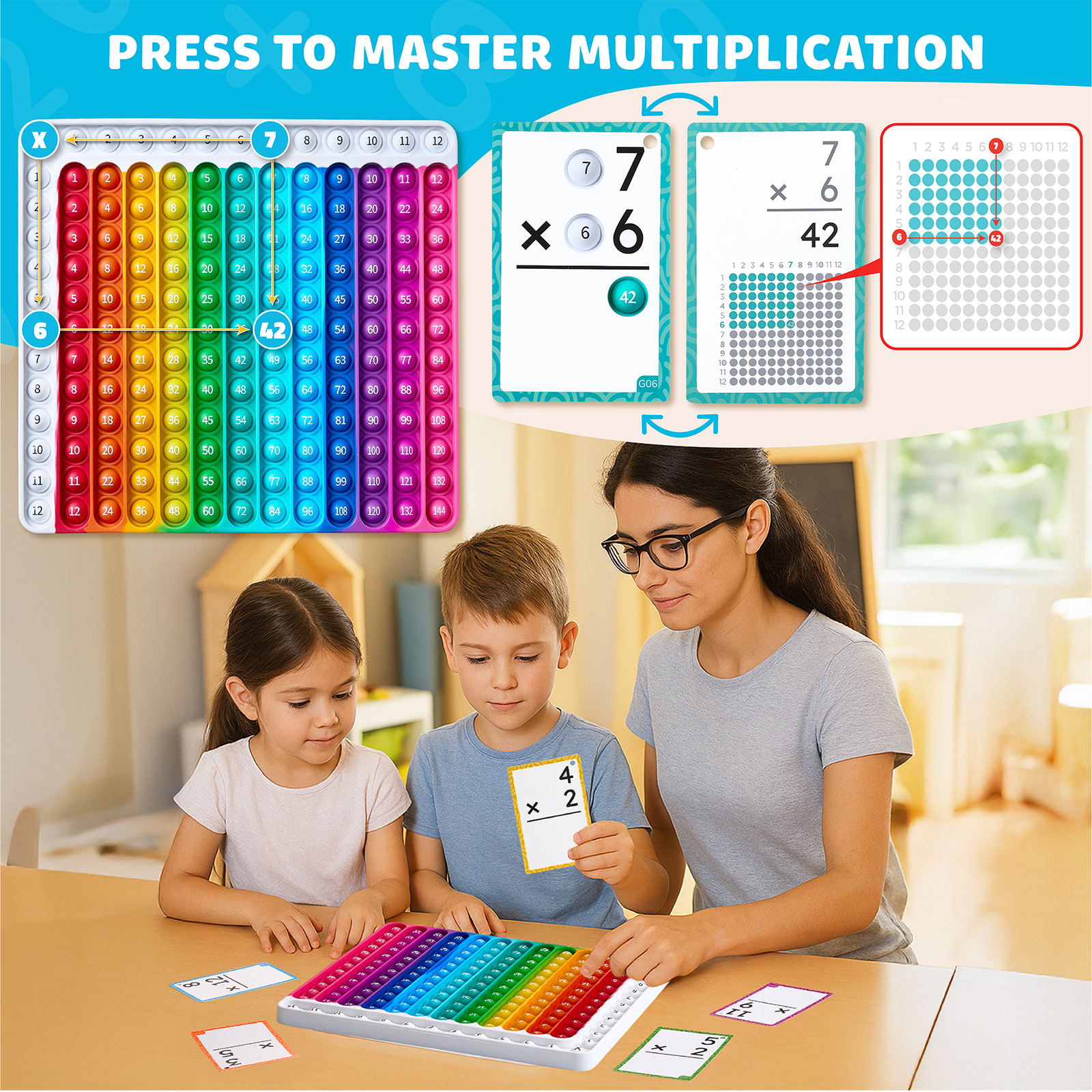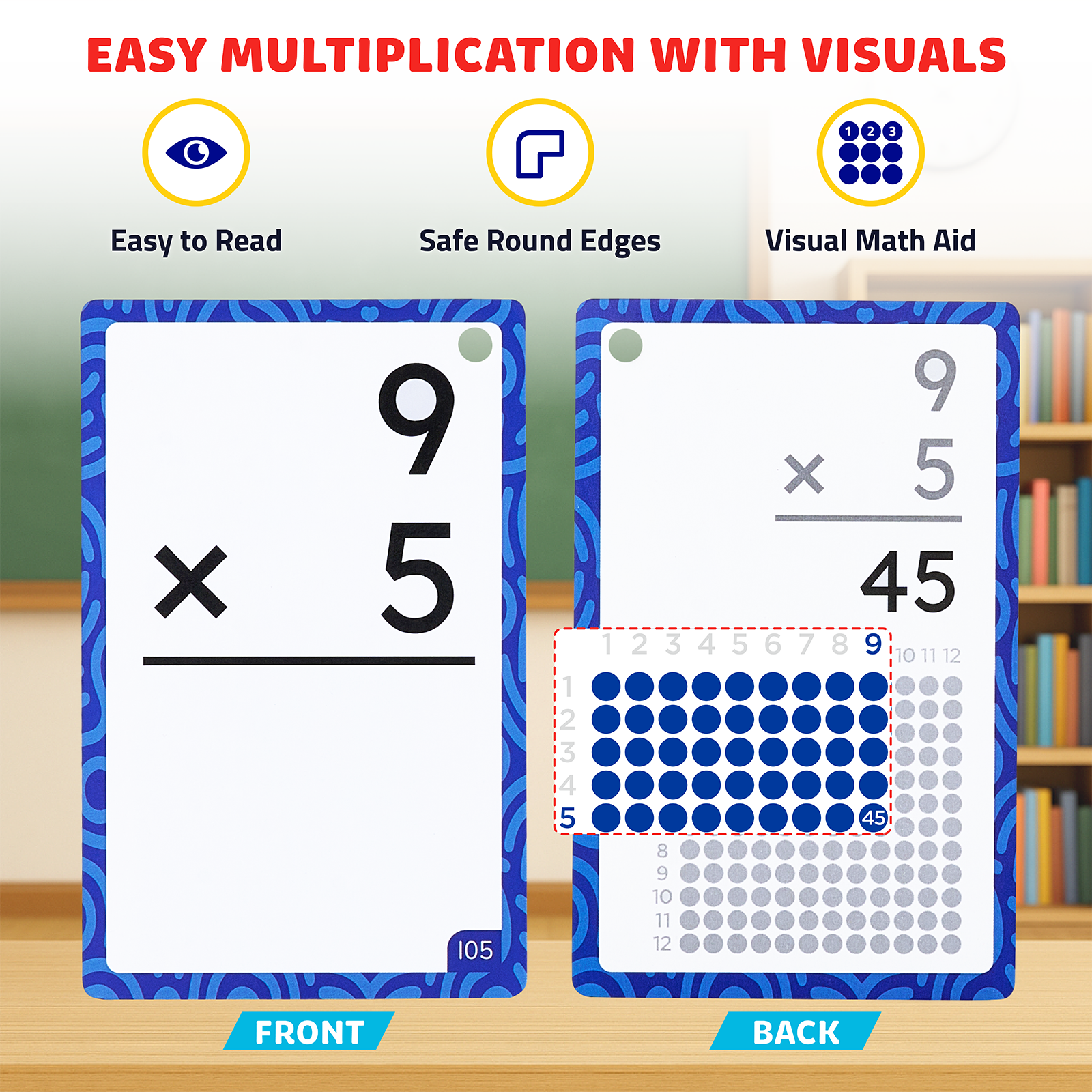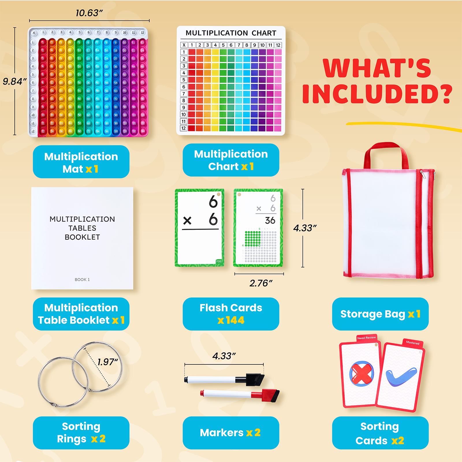 • Math Skill Development: Help teach your child basic multiplication with our multiplication flash cards and math mat. This math games set is perfect for honing early math skills while reinforcing calculation techniques at any age