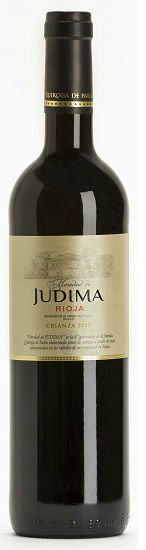 Displayed is a bottle of Judima Crianza 2010 made from our own selected vines of Tempranillo picked at their ripest. This red wine is aged for a minimum of 12 months in American and French oak barrels. It is then matured in concrete tanks in the cool and undisturbed depths of our underground cellar. This table wine has a bright ruby color with a clean and elegant nose. The palate is rich and velvety with a long aftertaste for your enjoyment.