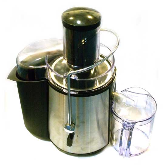 Pictured is a juice extractor that can fit whole foods for fast and easy juicing. The stainless steel finish promises lasting durability with resistance to corrosion. This professional-grading juice extractor makes a great addition to households.