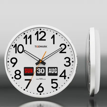 Jumbo wall clock with flip calendar which is ideal for offices, schools and public places.