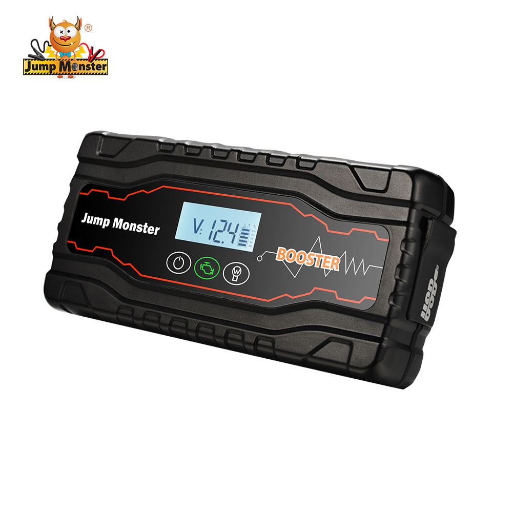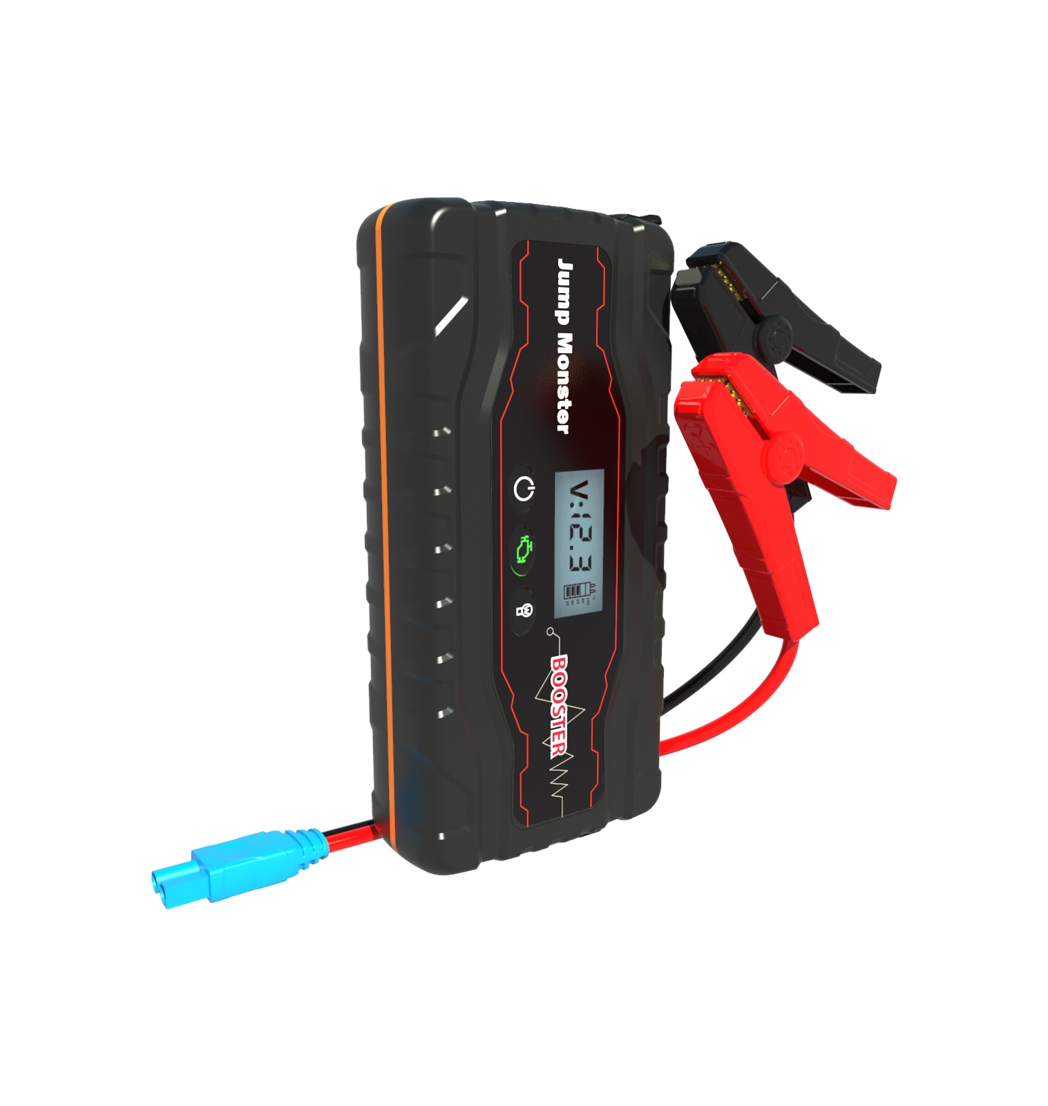 Shown here is a portable jump starter with a compact design. Considering safety, it has a built-in protection system to prevent over current, short circuit, overload and overcharging. Provide reliable power to start your vehicle. This reliable device can meet your charging needs in the event of a power outage.