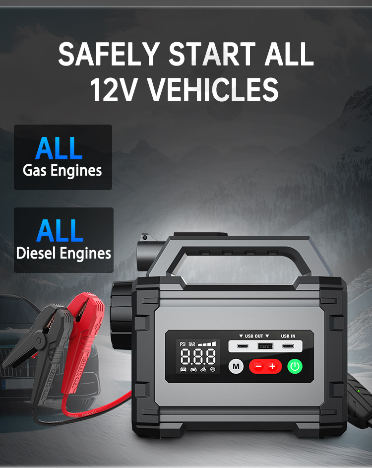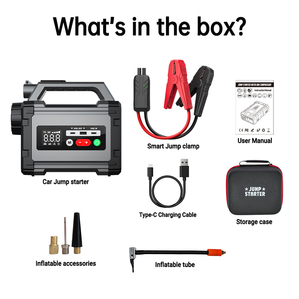 •Product features: Jump Starter with Air pump and High Beam,ultra-thin,3.0fast charging