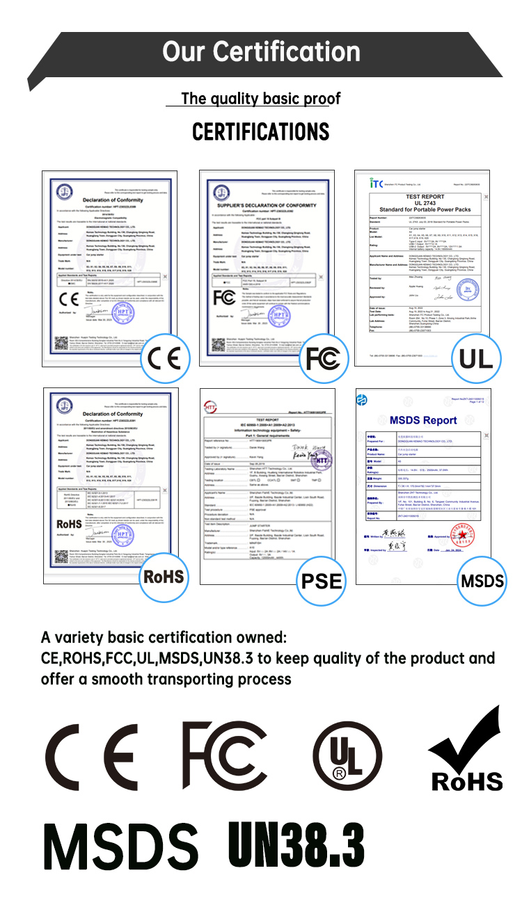 •Certificate:UL2743、CE、LVD、RoHS、FCC、MSDS、UN38.3