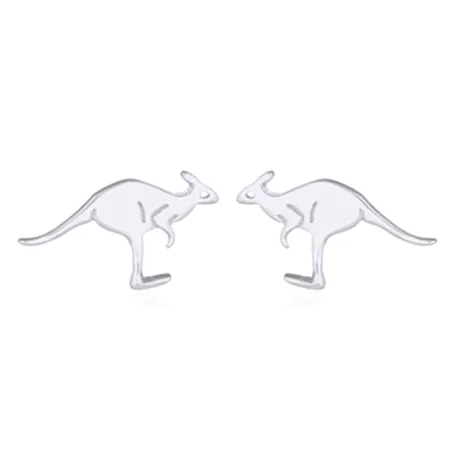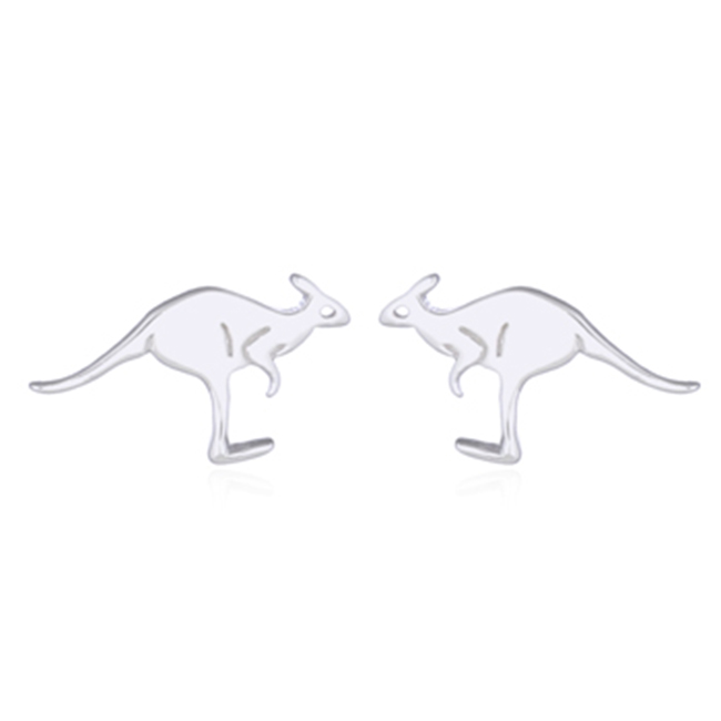 Jumping Kangaroo in Silver Plated Stud Earrings