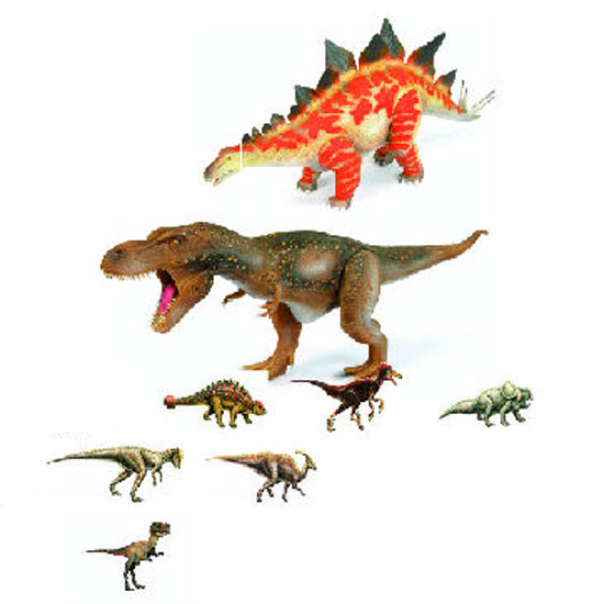 • Each dinosaur has a movable head, mouth, legs, tail and neck.