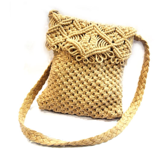 This is a stylish knitted jute bag made with delicate craftsmanship. The jute bag is perfectly knitted with creative patterns on the upper and well-organized knitting on the body. The braided strap is long enough for easy carrying.