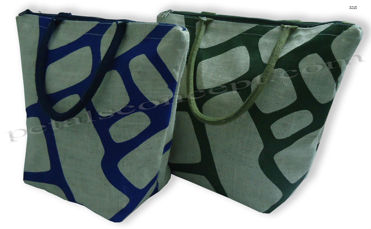 • Description: PP laminated jute tote bag with a top zip closure, an inside hanging pocket, and padded rope handles