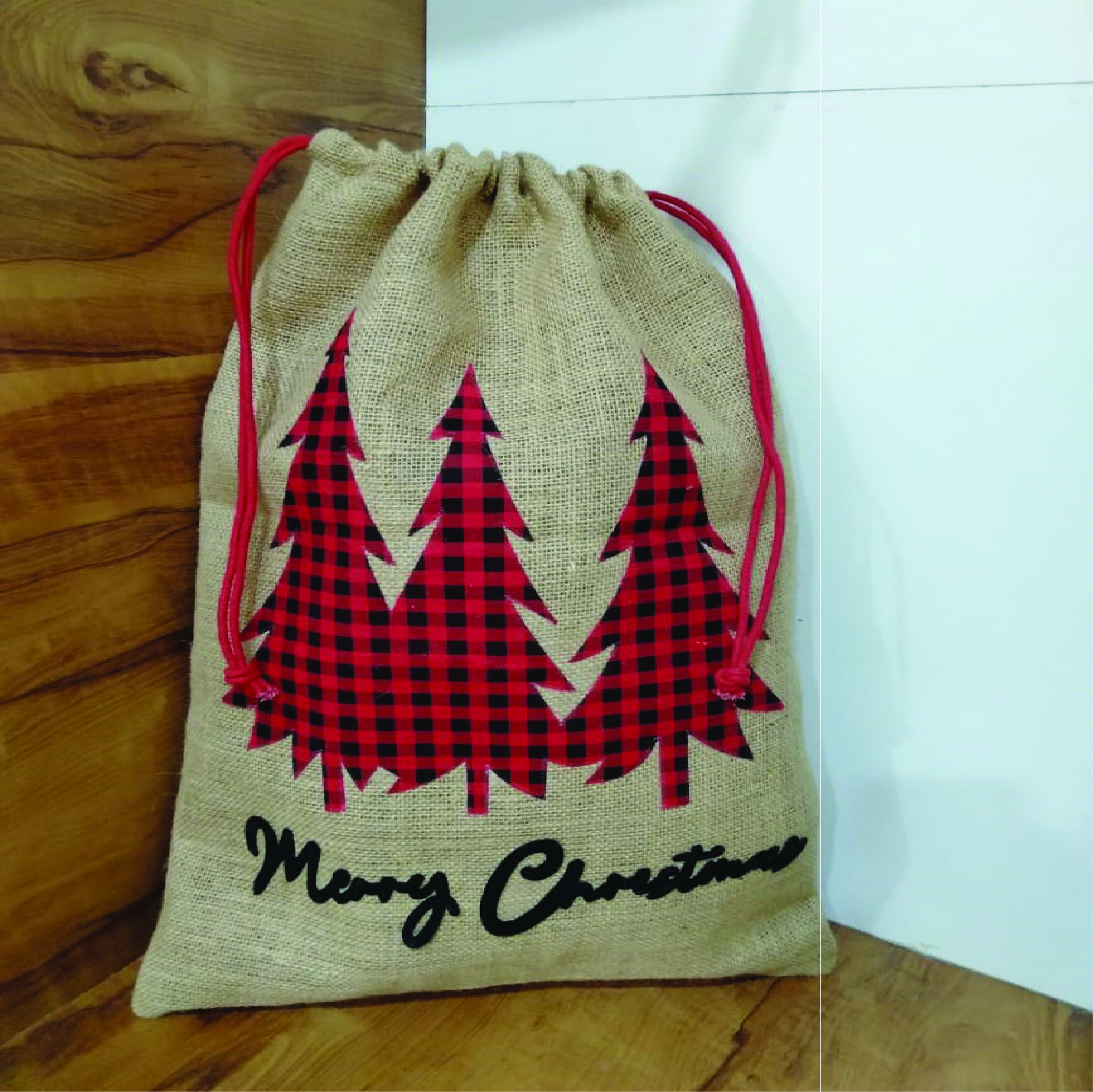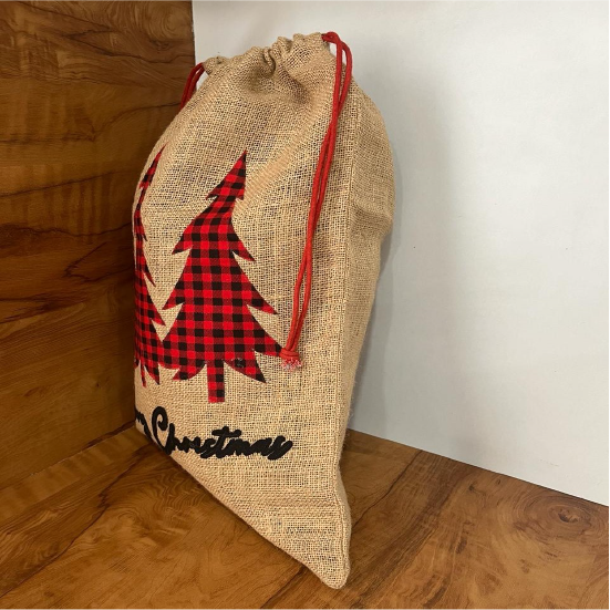 Jute sack Christmas gift this is natural jute with applique embroidery design. gift bag,