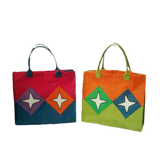This jute shopping bag features a colorful appearance. It is fitted with sturdy handles which are comfortable to grip. The bag is suitable for holding bulk goods while shopping.
