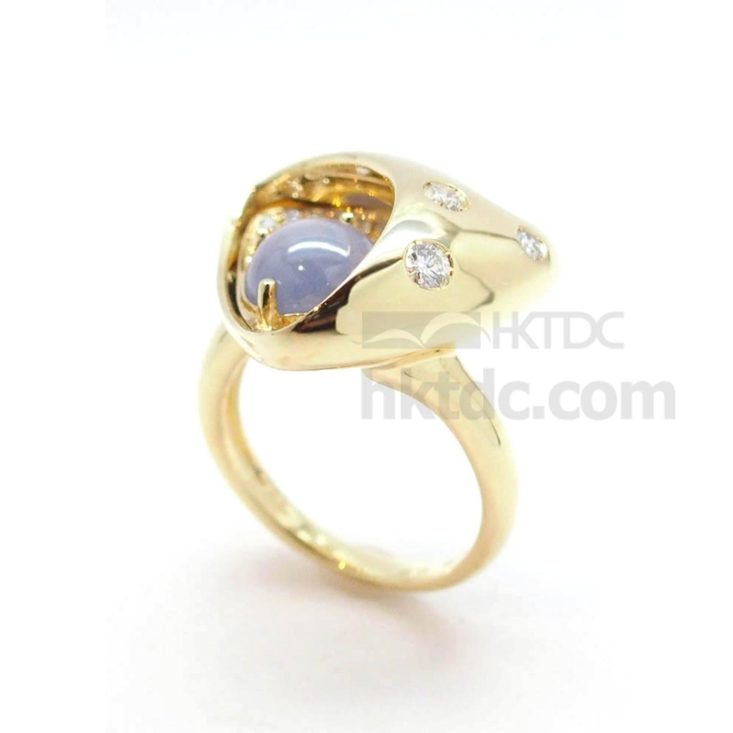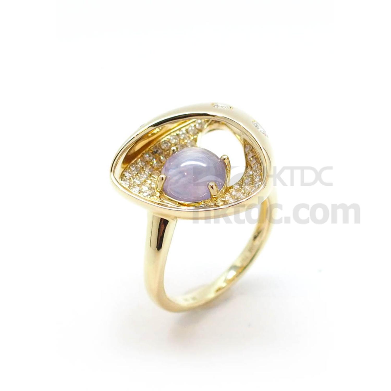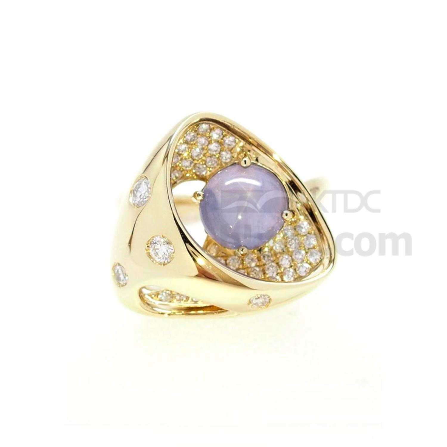 K18Yellow Gold Ring with Star Sapphire and Diamonds