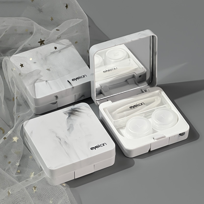 K2307 is marble design contact lens case, and it includes contact lens dual case, contact lens tweezer set, mirror. This marble design is very popular for it uses traditional Chinese Ink classical design.