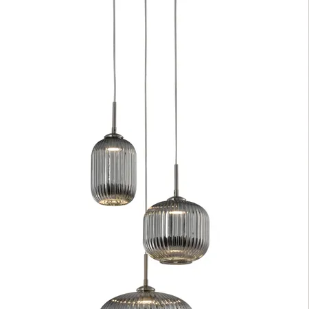 A stripe glass lamp with 3 E27 light sources, Φ35 H120cm, color options: Clear / Green / Blue / Purple / Champagne / Smokey Grey