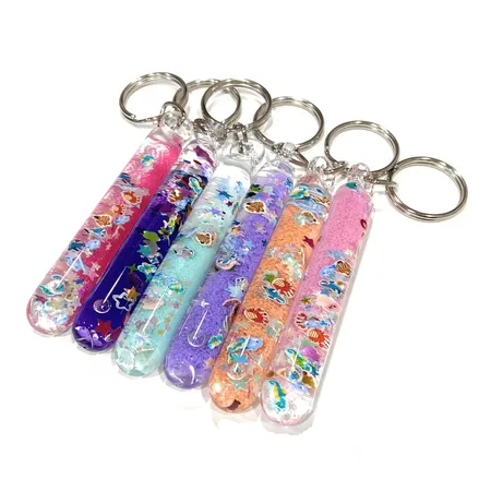 Decorate your travel bags, luggages, bags, with this colorful and elegant glitter wand keychain. It has a round split ring for attaching keys or other accessories and is decorated with a compact tube with glitter inside. This glitter wand keychain will create beautiful patterns as it moves and is excellent as gift or souvenirs.