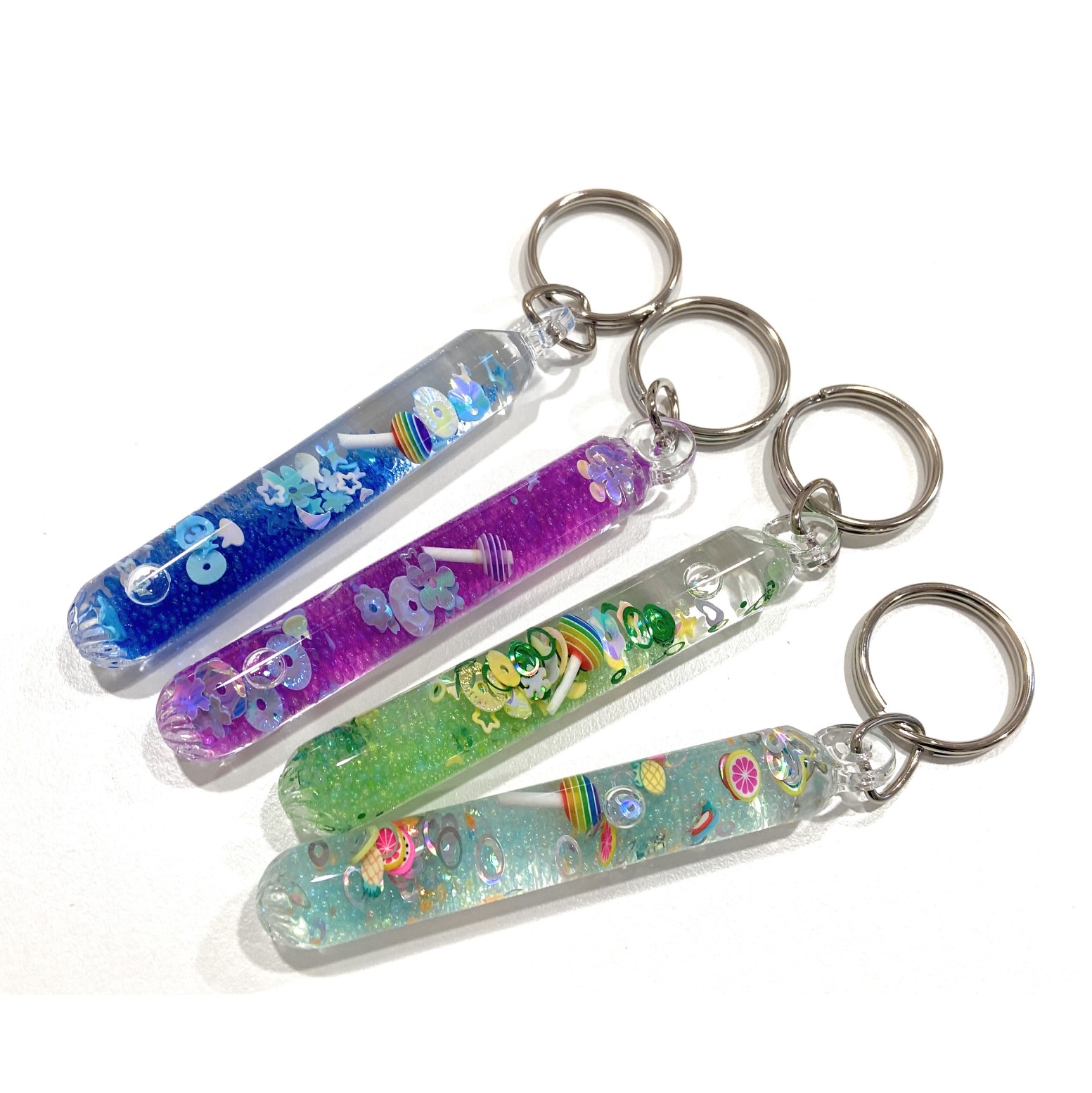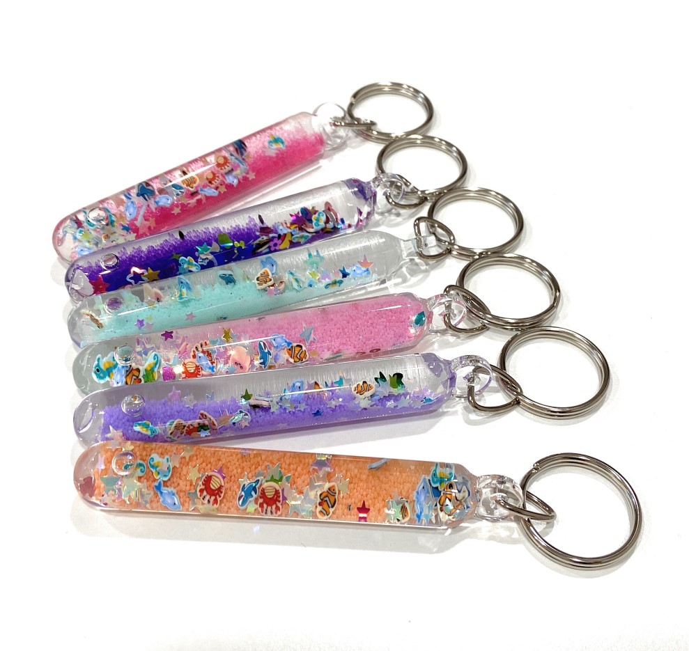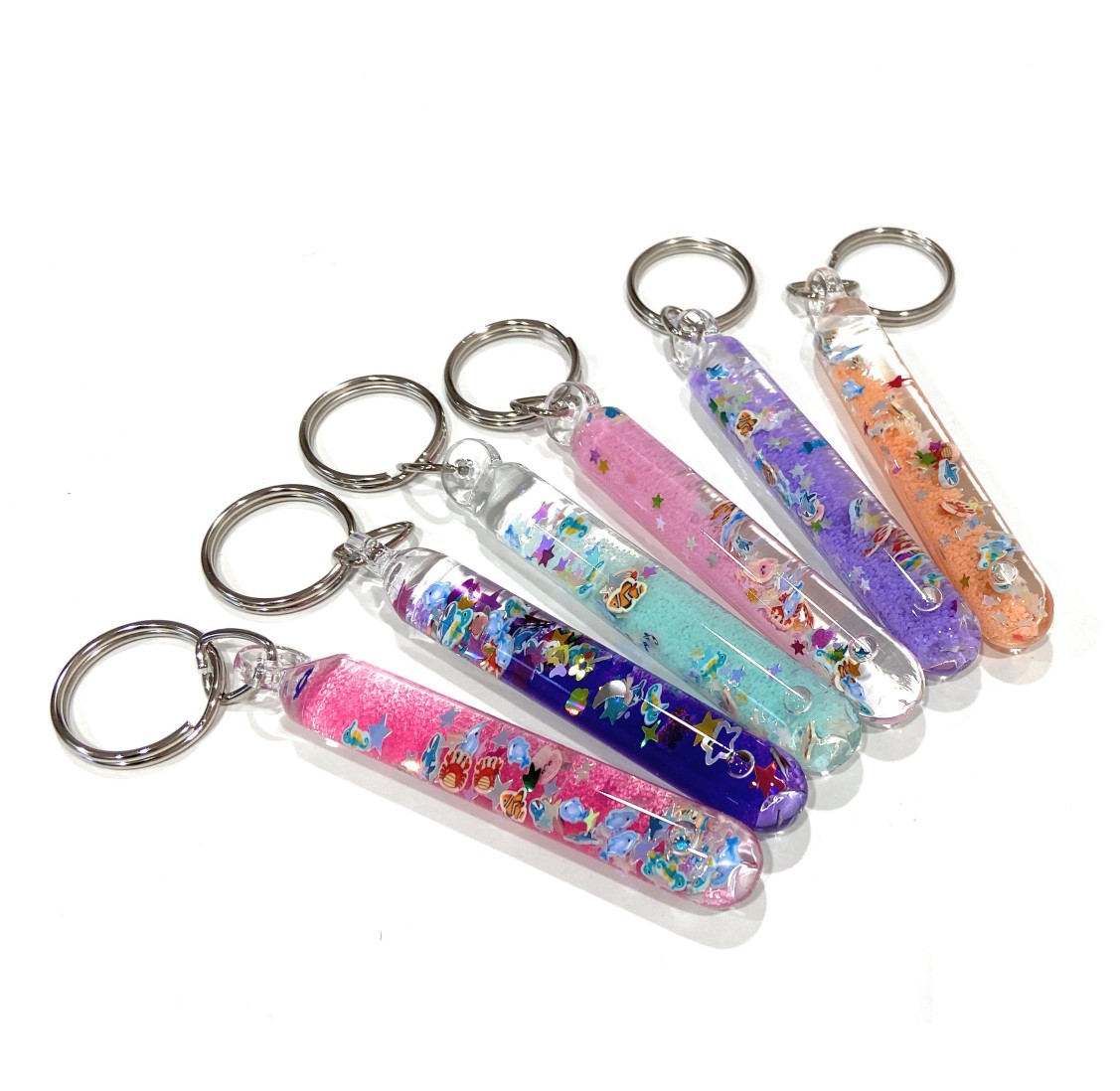 Decorate your travel bags, luggages, bags, with this colorful and elegant glitter wand keychain. It has a round split ring for attaching keys or other accessories and is decorated with a compact tube with glitter inside. This glitter wand keychain will create beautiful patterns as it moves and is excellent as gift or souvenirs.