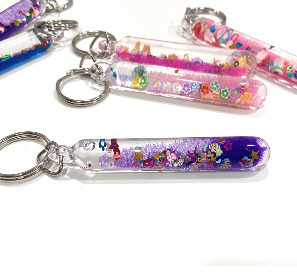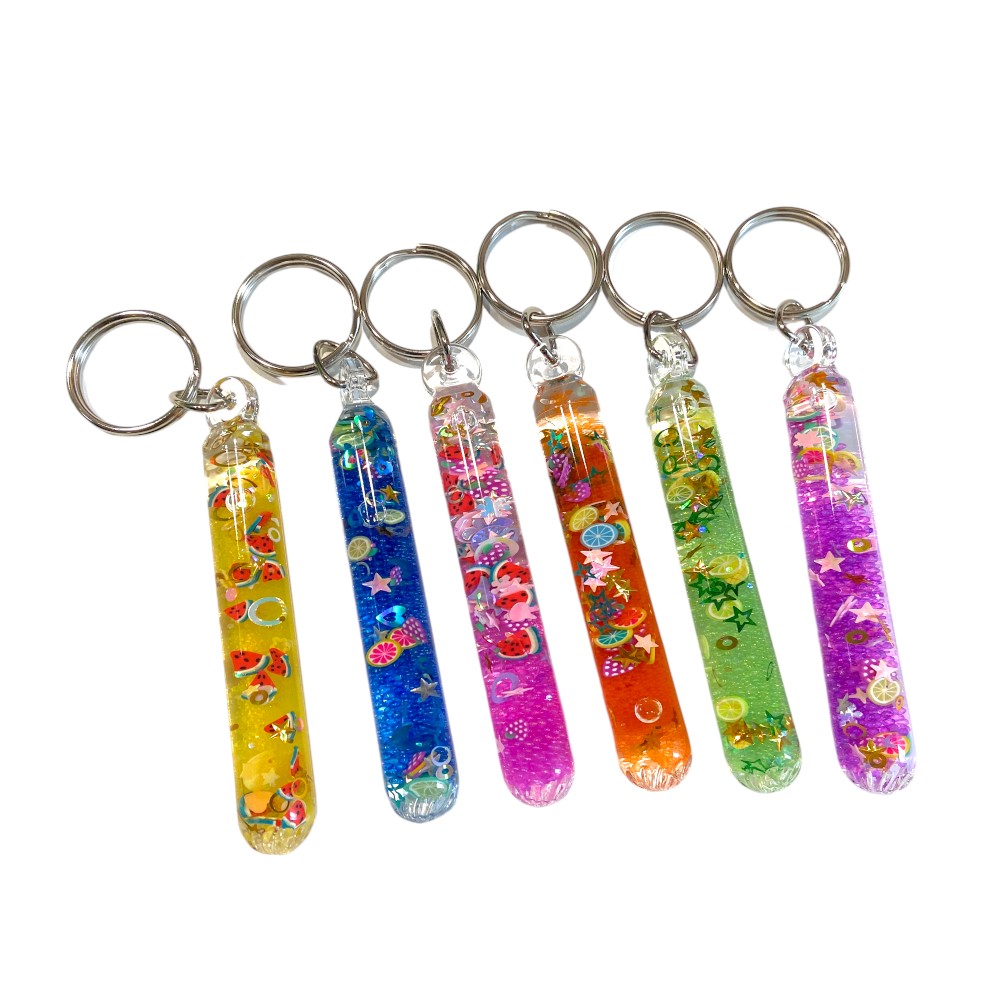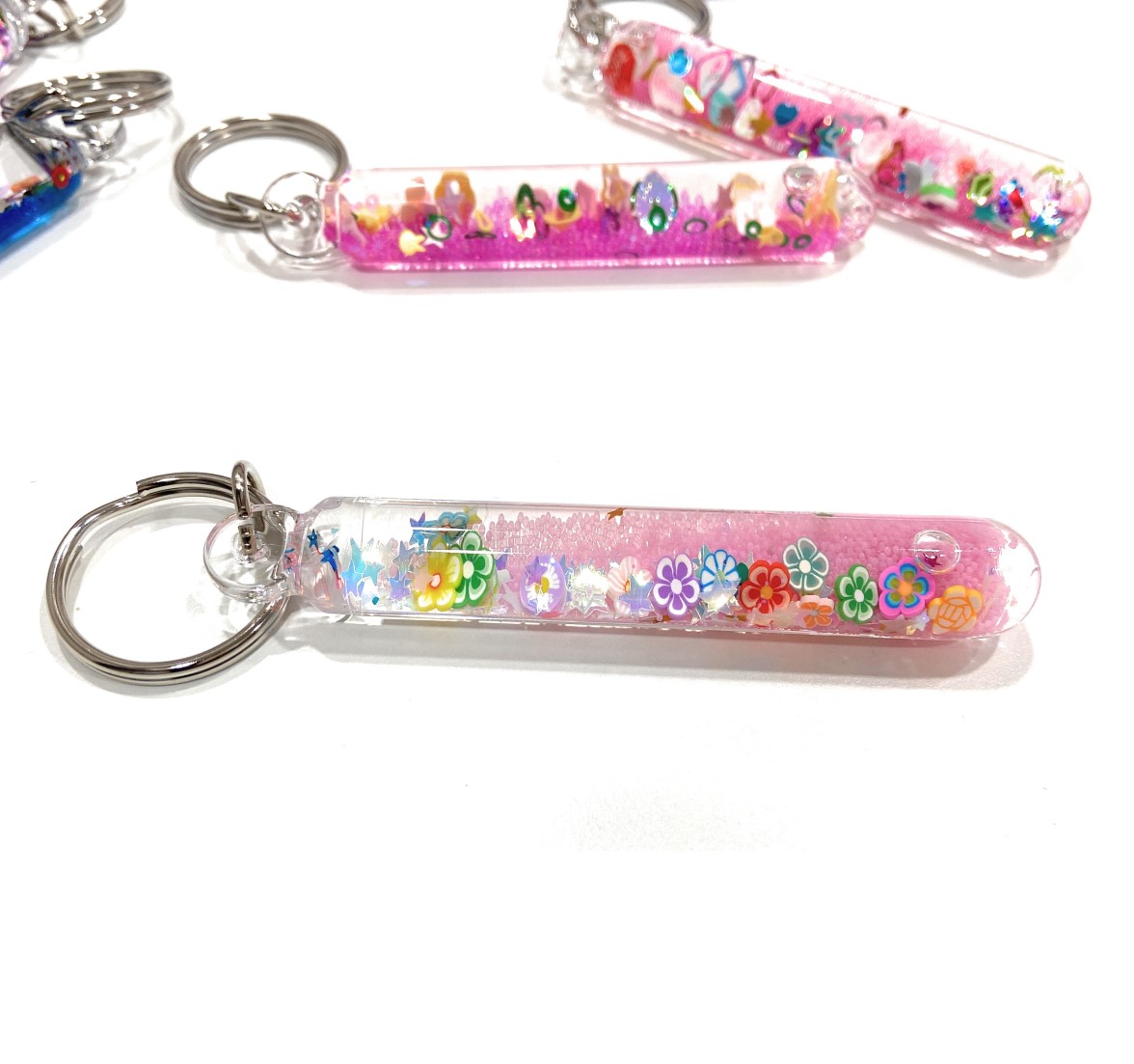 Decorate your travel bags, luggages, bags, with this colorful and elegant glitter wand keychain. It has a round split ring for attaching keys or other accessories and is decorated with a compact tube with glitter inside. This glitter wand keychain will create beautiful patterns as it moves and is excellent as gift or souvenirs.