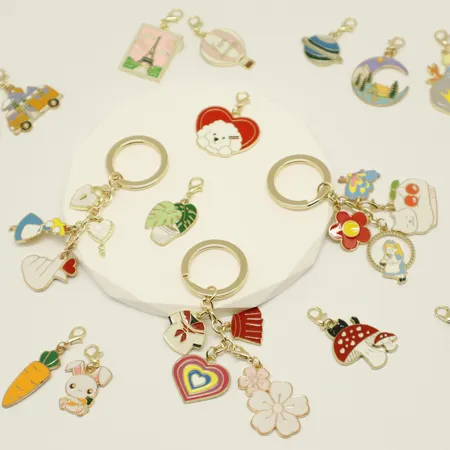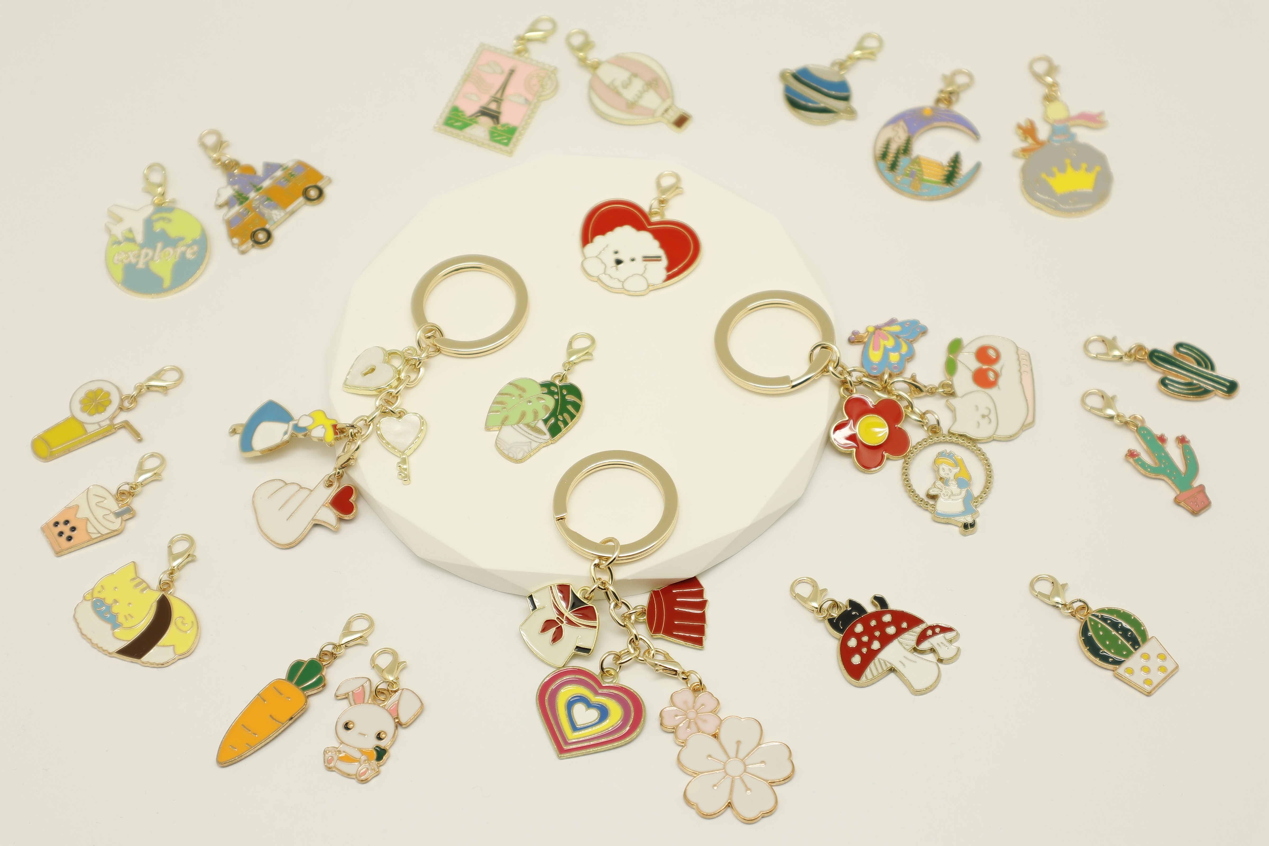METAL KEY CHAIN WITH ENAMEL MULTI CHARMS