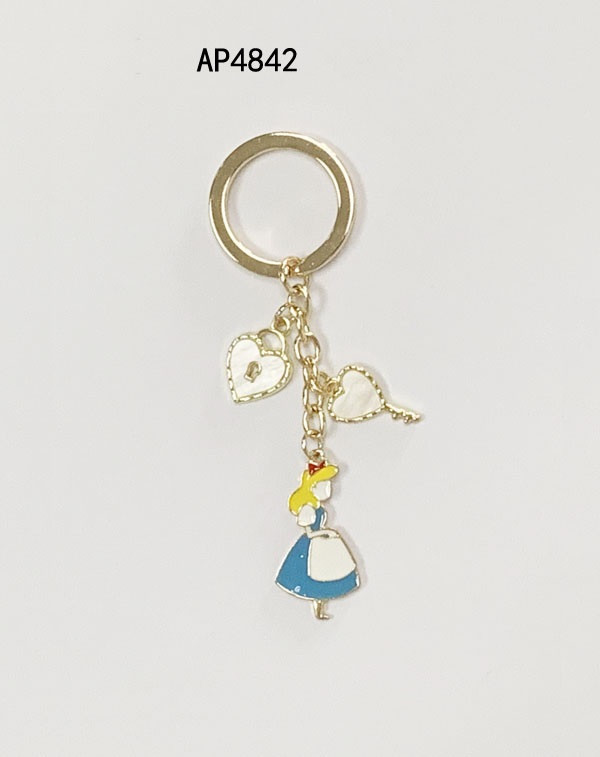 METAL KEY CHAIN WITH GIRL & KEY CHARMS