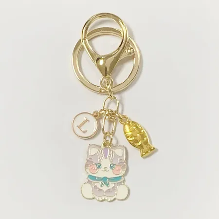METAL KEY CHAIN WITH CAT & FISH CHARM
