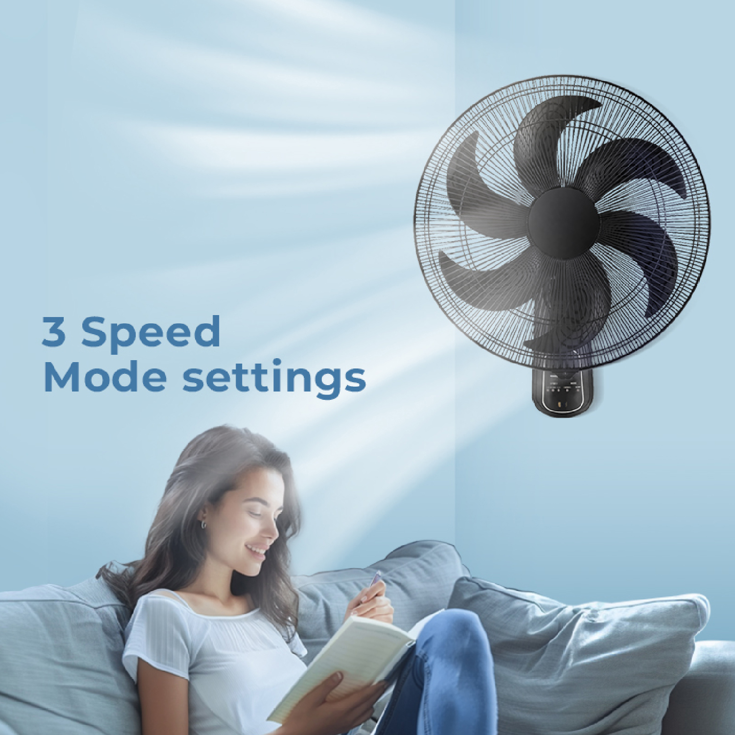This 16-inch AC wall fan combines powerful performance with modern convenience, featuring multiple airflow modes and remote operation for enhanced comfort.