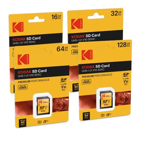 KODAK SD PREMIUM PERFORMANCE Class 10 UHS-I U1 V10 A1 16/32/64/128GB - Up to 90MB/s Read Speed - Up to 25MB/s Write Speed