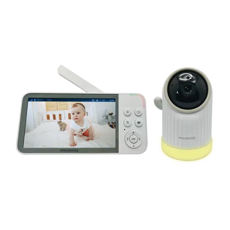 2.4G FHSS wireless Video Baby Monitor with PTZ camera and night light.  1280 x 720P camera resolution, 720P IPS 5" screen, Two-Way talk, auto infrared night vision, 5000mAH rechargeable battery for the displayer, VOX mode, White noise + Lullabies soothing baby sleeping, 1000ft reception range, Timer reminder, Loss or poor connection alert, Temperature detection and alert when out of preset range, low power alert, auto standby mode to save power, with DC5V 1A switching mode power adaptor and Type C USB charging cables.