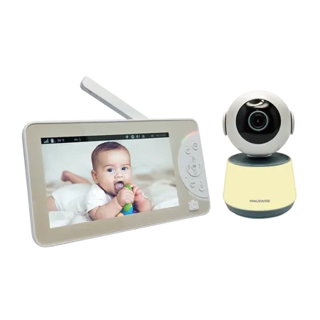 2.4G FHSS wireless Video Baby Monitor with PTZ camera and night light. 1280 x 720P camera resolution, 1024 x 600P IPS 7" screen, On Screen picture capture and auto save to micro SD inserted and playback when enter into standby mode to view lovely baby pictures saved. Video also supported. Two-Way talk, auto infrared night vision, 6000mAH rechargeable battery for the displayer, VOX mode, White noise + Lullabies soothing baby sleeping, 1000ft reception range, Timer reminder, Loss or poor connection alert, Temperature detection and alert when out of preset range, low power alert, auto standby mode to save power, with DC5V 1A switching mode power adaptor and Type C USB charging cables.