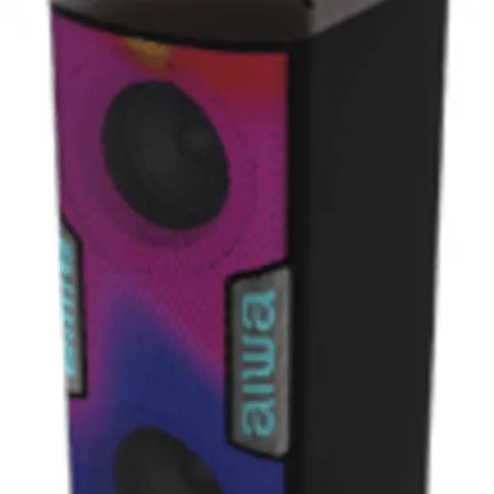 Features include karaoke-ready functions with adjustable echo, precision audio controls, FM radio, RGB flame lighting, portable design with trolley handle, and a wireless remote for effortless operation.