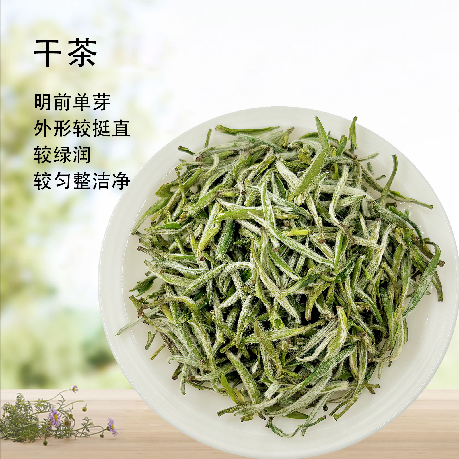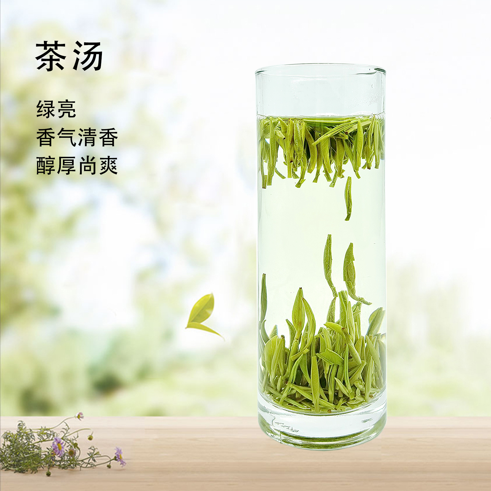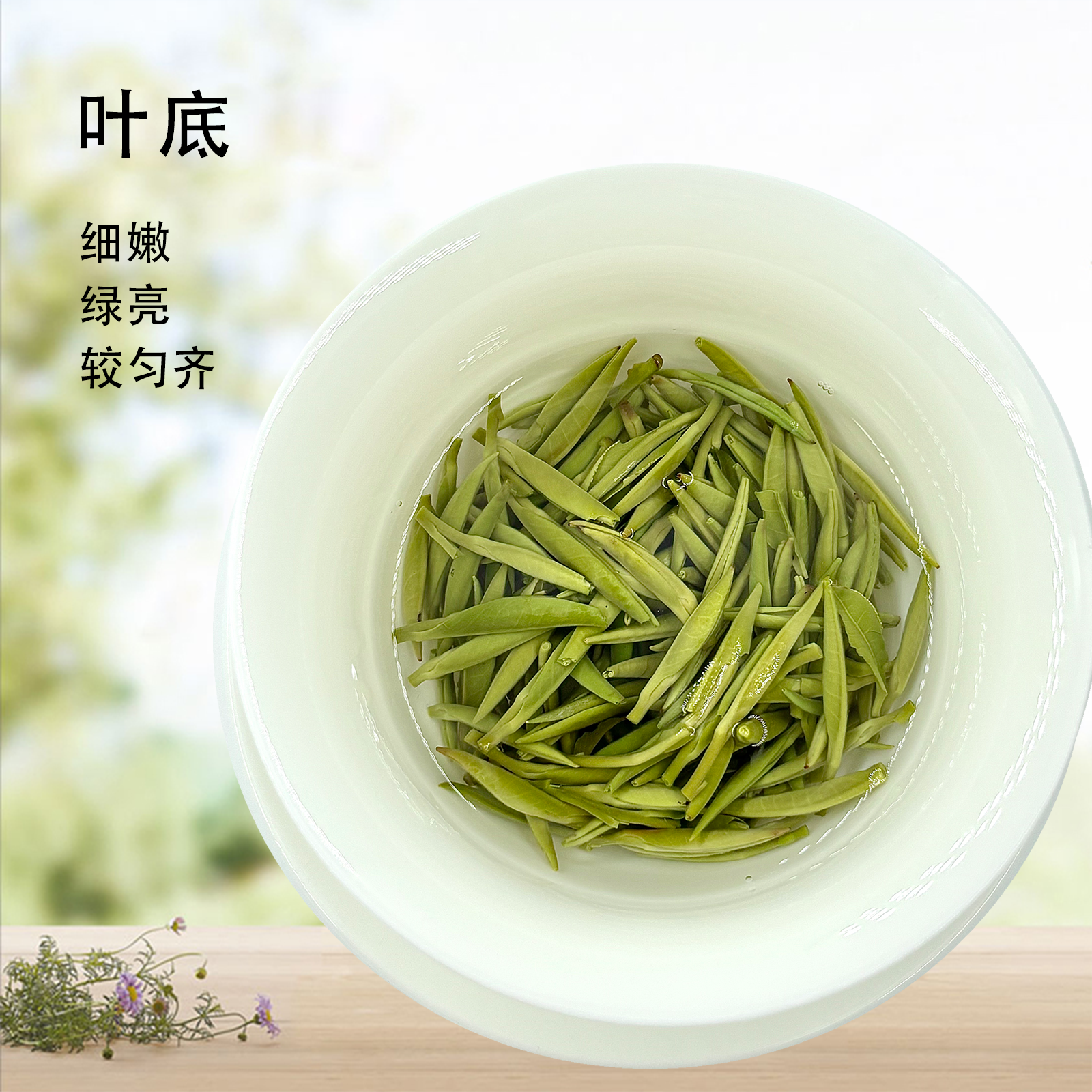 This tea is a pre-Qingming first-grade single bud. The dry leaves are relatively straight, greenish, and uniform in appearance. The liquor displays a bright green color with a fresh, fragrant aroma. Its taste is mellow with a pleasantly refreshing aftertaste. The brewed leaves are tender, green, bright, and evenly whole.