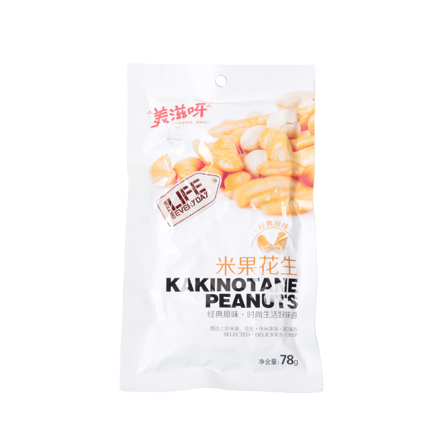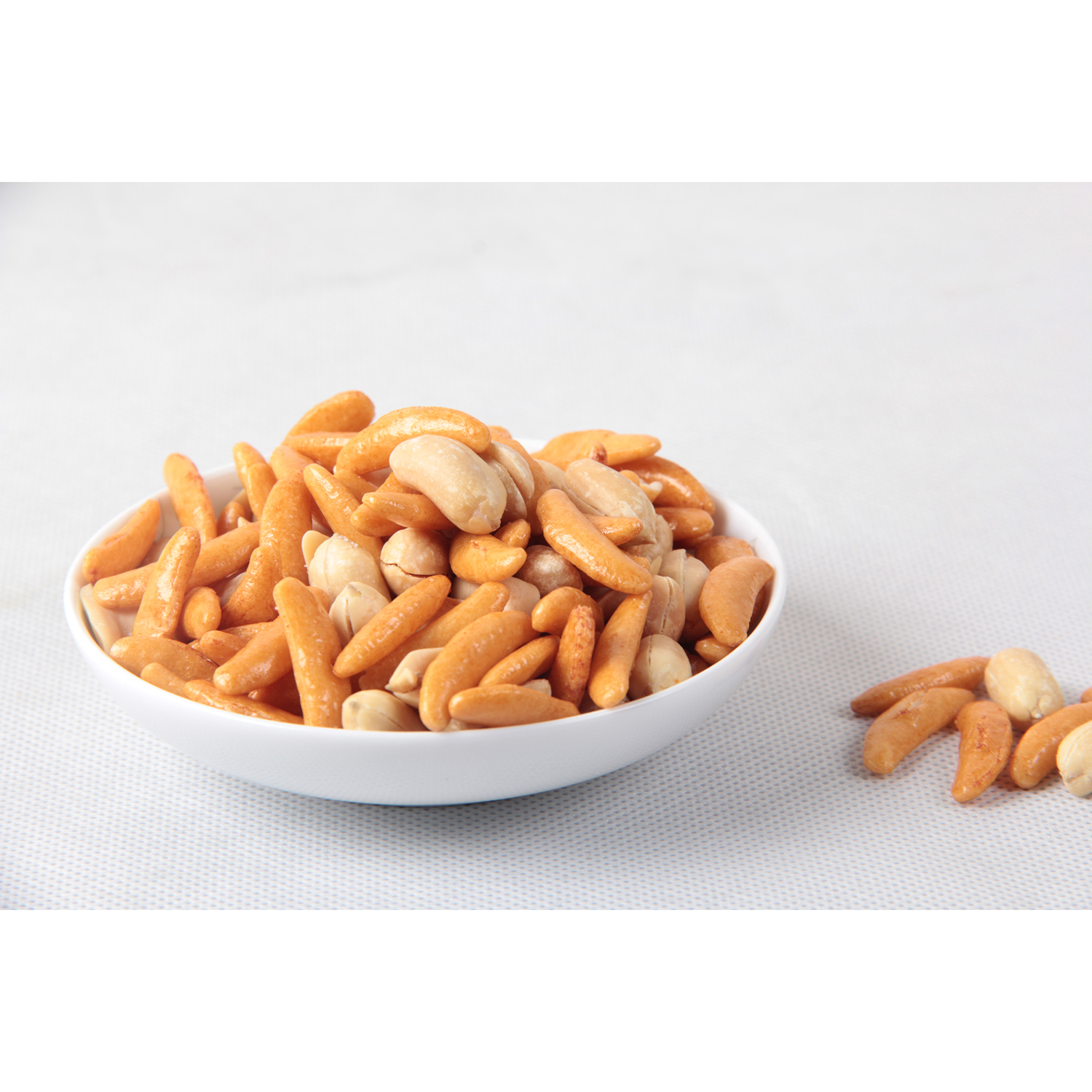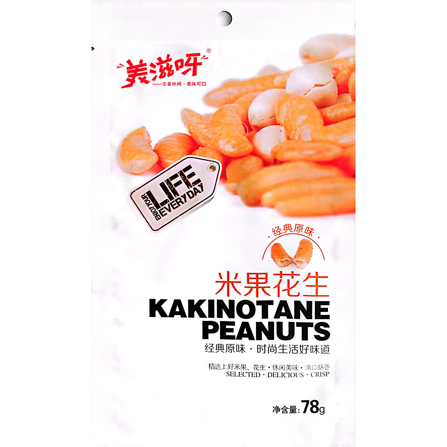 A traditional Japanese snack that pairs crunchy rice crackers with savory, roasted peanuts. These crackers are seasoned with a blend of spices and soy sauce, giving them a slightly salty flavor profile. The combination of kakinotane rice crackers and peanuts creates a harmonious balance of flavors and textures. The contrasting crunch of rice crackers with the softer, smoother peanut creates an enjoyable mouthfeel, making kakinotane peanut a popular choice for snacking.