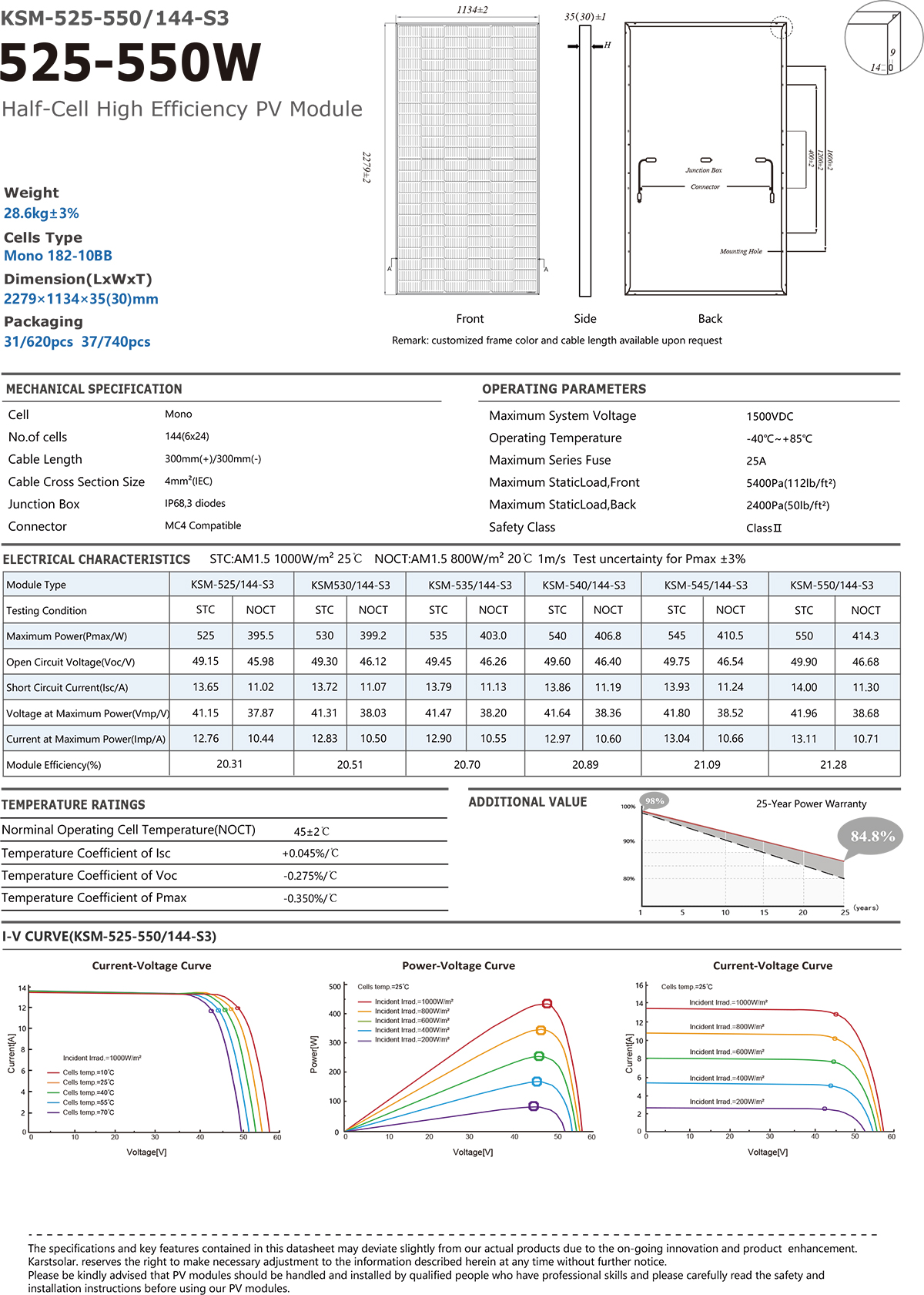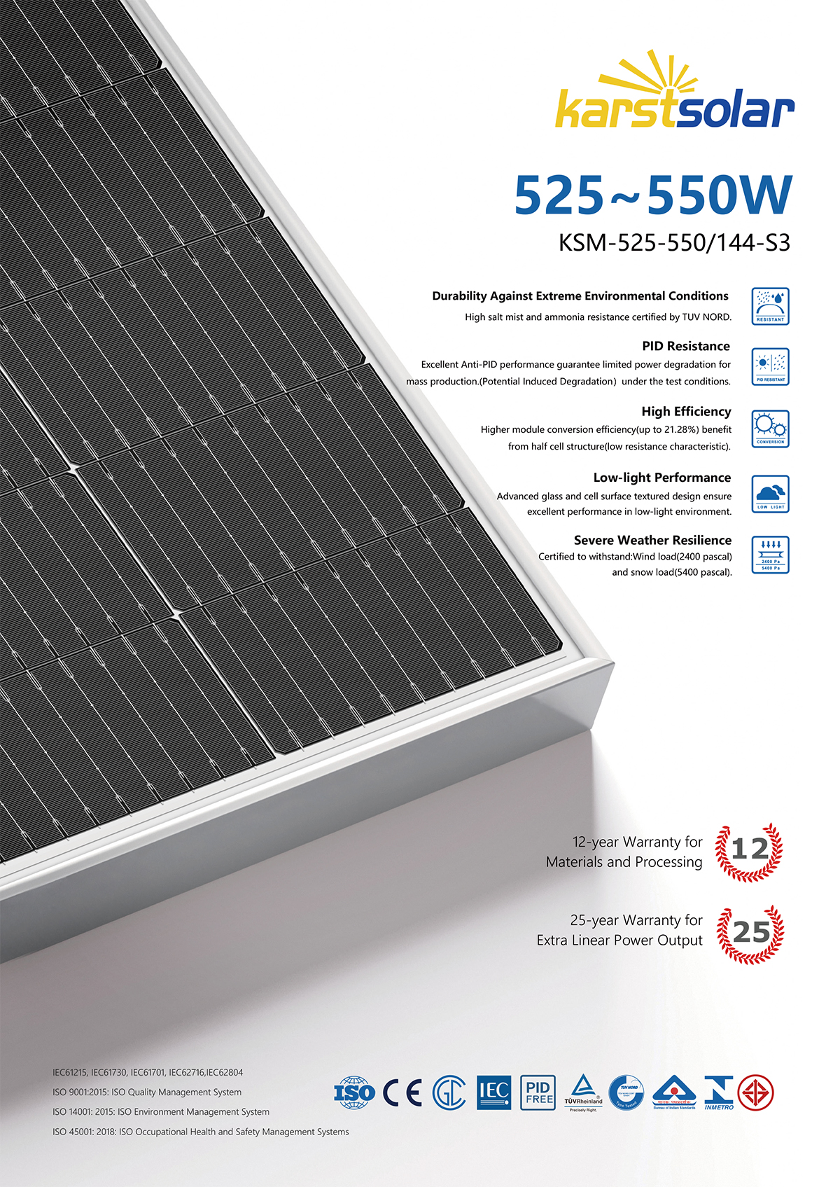 Karstsolar Solar Photovoltaic Panel KSM525W-550W
