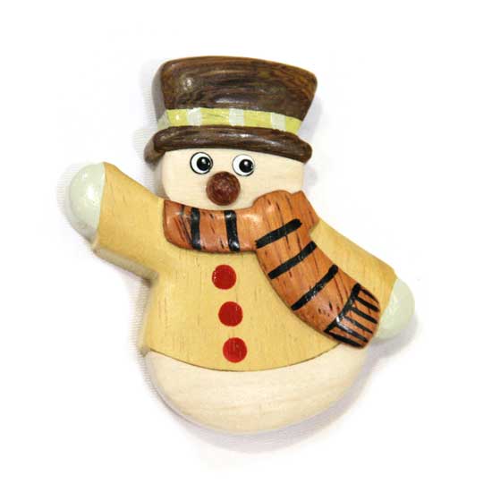 Displayed is a lovely key chain that comes in the figure of a snowman. Made of wood, this key chain is comfortable to touch and lasts a long time. This fun accessory is a good item to keep in your pocket or leave on your desk.