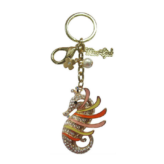 This is a fashionable key chain that is made of top-quality material for extended durability. The dangling shiny seahorse ornament adds a touch of style to the whole piece. This key chain provides an ideal way to organize your keys neatly.