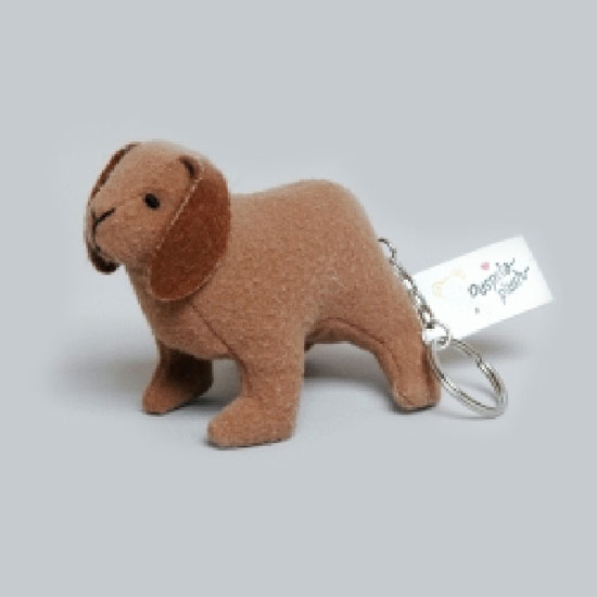 This is a key chain that comes with a dog-shaped charm. Made of nylex, the toy dog is soft and comfortable to touch. This lovely key chain is durable and easy to carry.