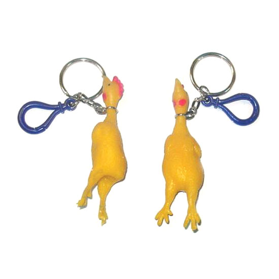 This is a key chain that comes in a chicken shape. Made of high quality material, this key chain is durable with long-lasting color. This fun key chain is easy to carry.
