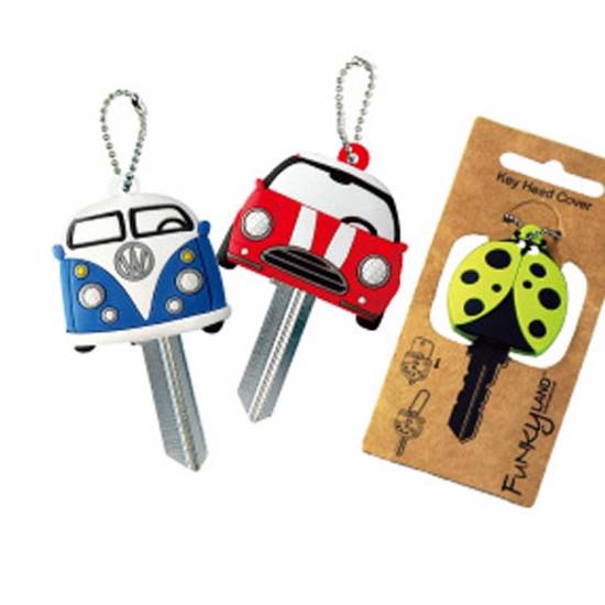 This is a collection of plastic key head covers. Beatles, mini cooper car and volkswagan car are some of the design of these key head cover. Assorted colour and design are available.