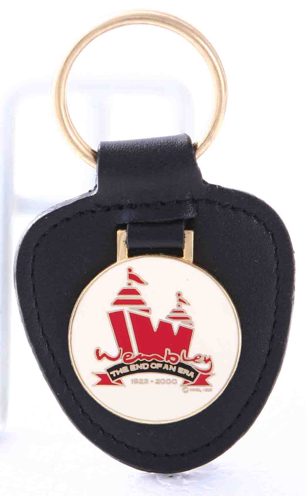This key tag features a leather-like plate with a decorative metal appliqué to the top. The tag is attached to a metal ring which allows it to be used as a key holder or zipper pull. Durable and stylish, it is an excellent gift for personal or business use.