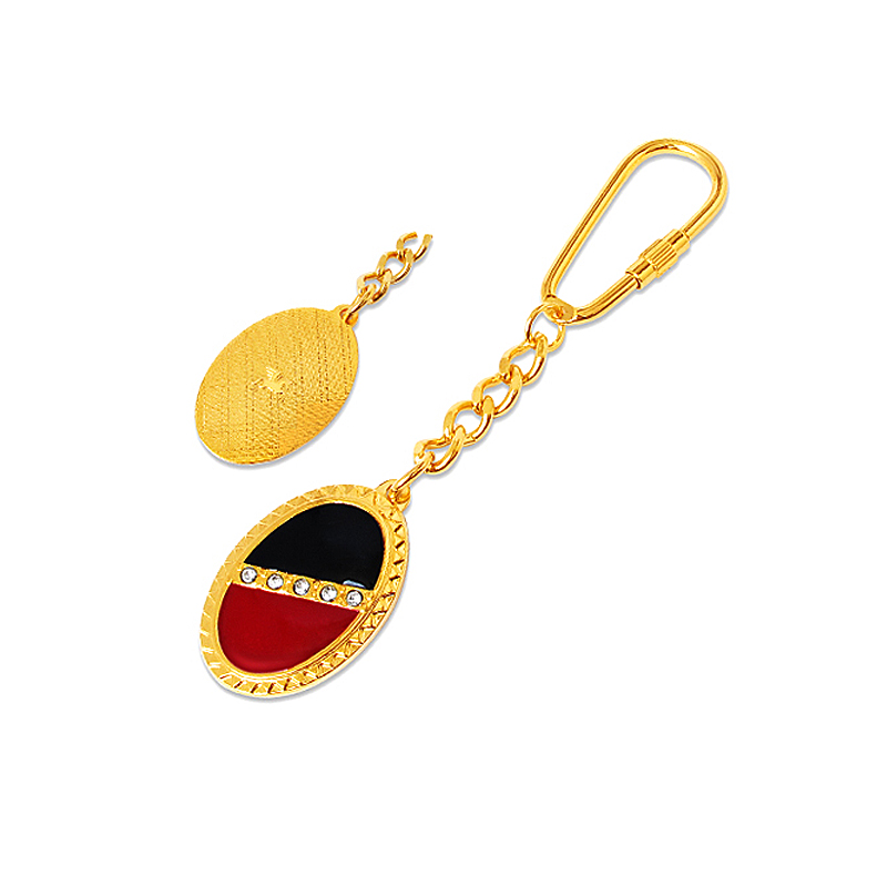 • Gold plated oval shape with crystals and flying horse logo keychain