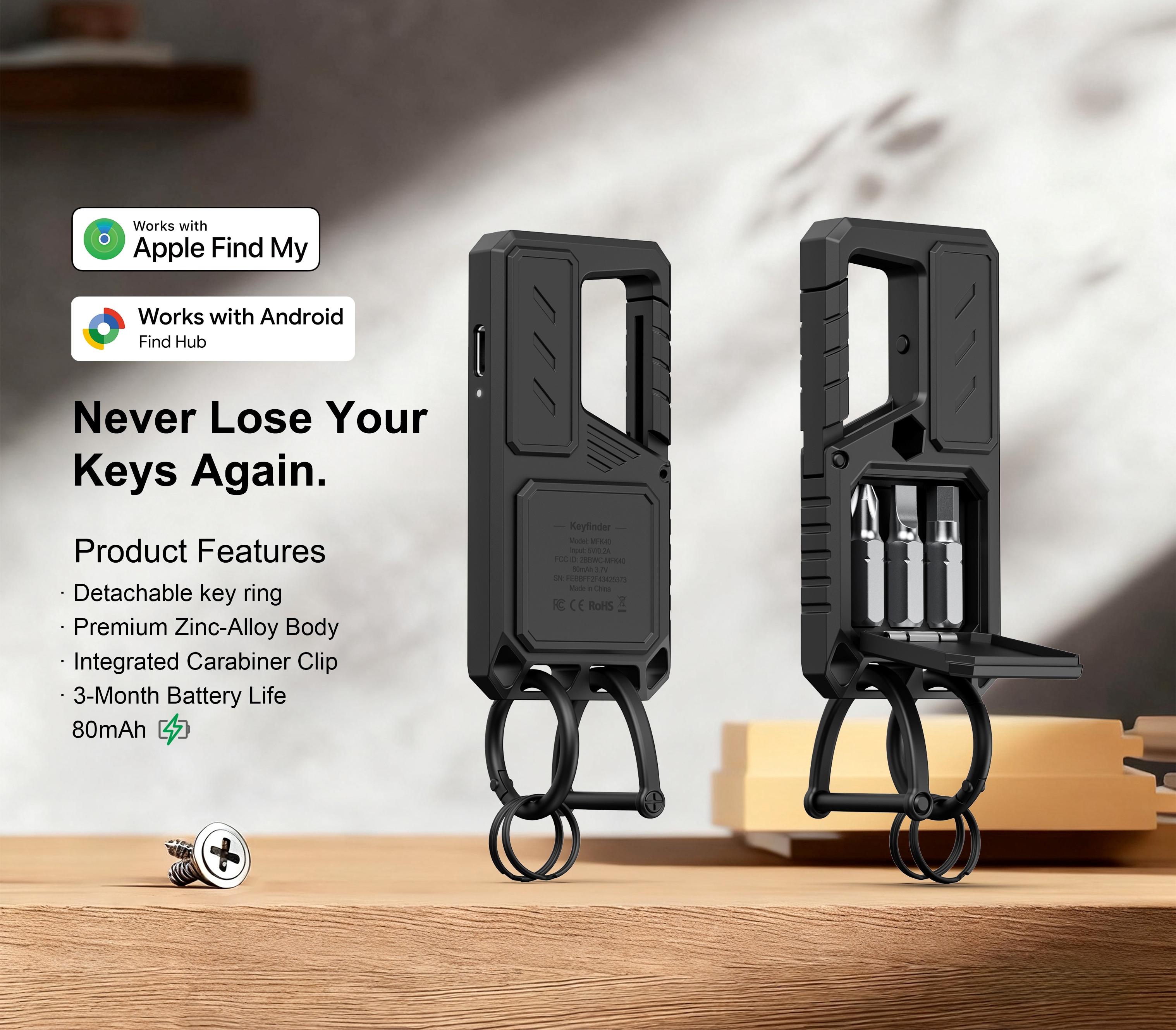 Keychain Locator Tags Integrated Carabiner Clip with Screwdrivers Zinc-Alloy Key Tracker